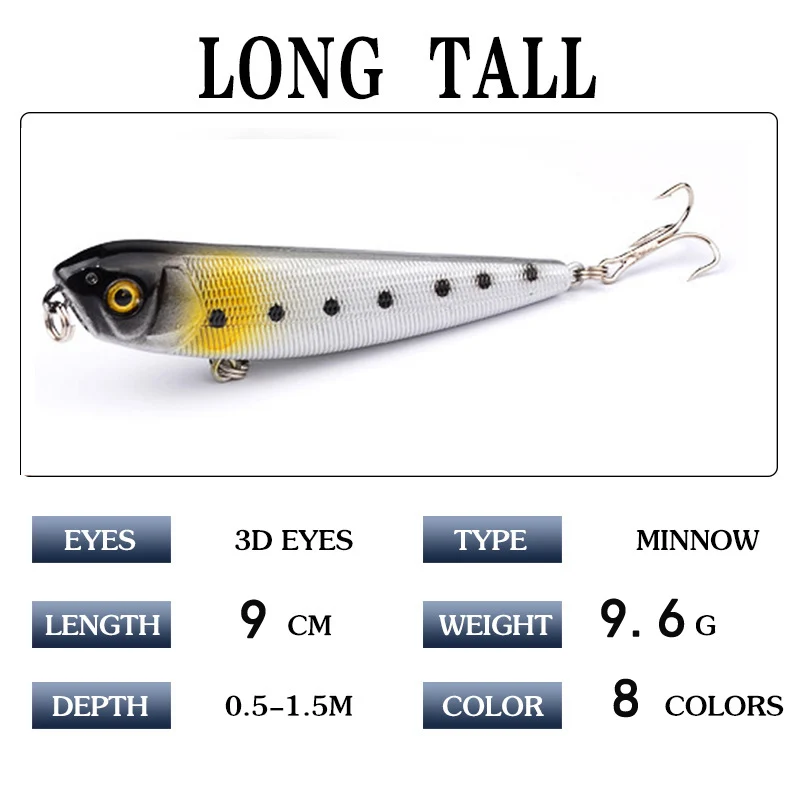 POETRYYI-señuelo de lápiz para pesca, 1 unidad, 90mm, 9,6g, señuelos duros artificiales, cebos para pececillos, aparejos flotantes para superficie de agua