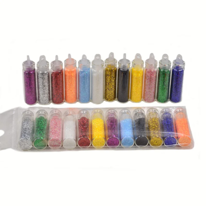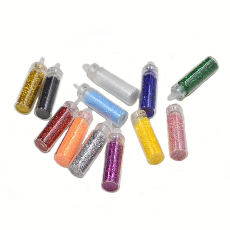 Polvo brillante para atar moscas, 12 colores, Decos de Ninfa, cabeza, cuerpo, piel, tamaños grandes, polvo brillante intermitente, materiales de moscas depredadoras