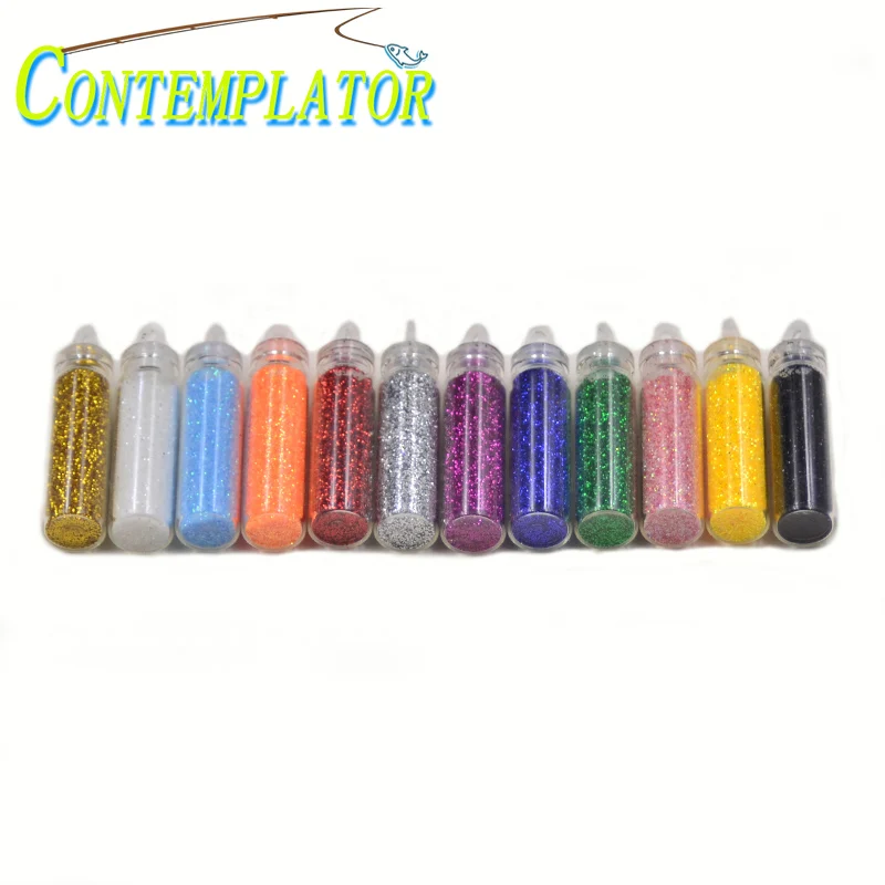 Polvo brillante para atar moscas, 12 colores, Decos de Ninfa, cabeza, cuerpo, piel, tamaños grandes, polvo brillante intermitente, materiales de moscas depredadoras