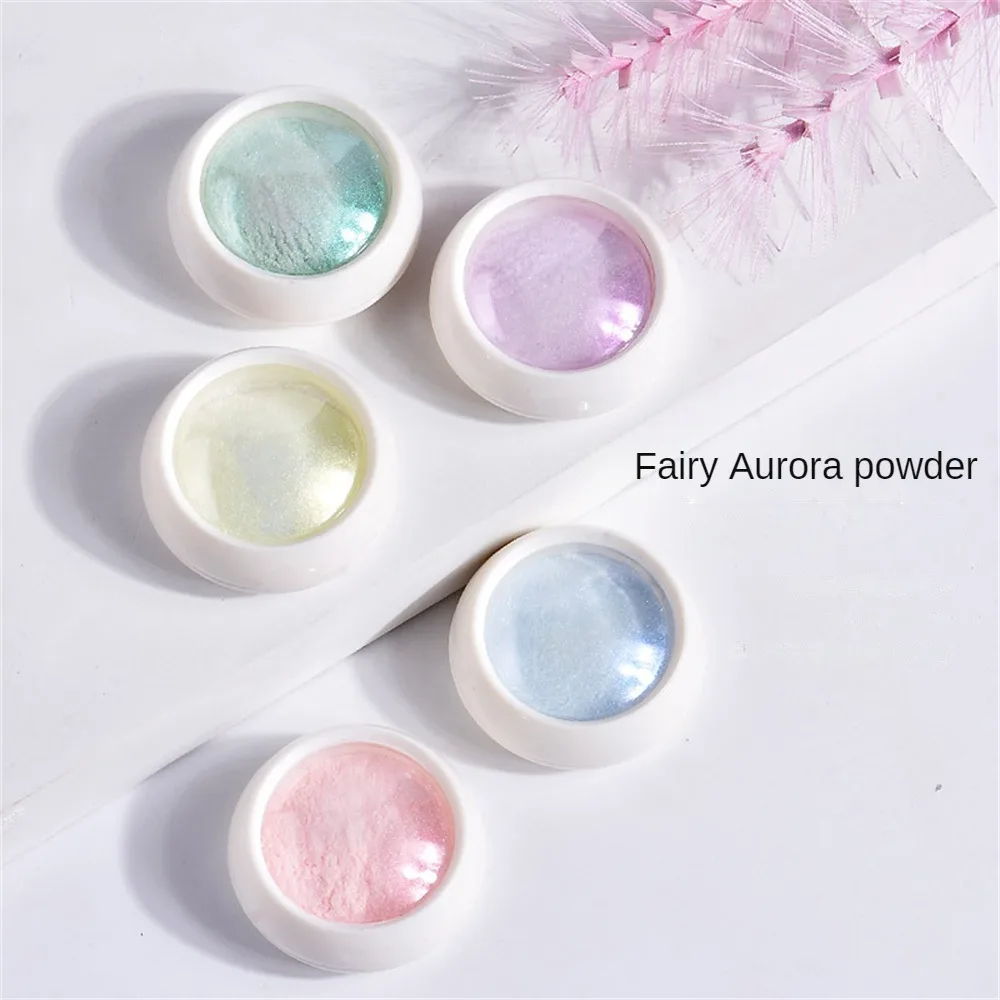 Polvo de espejo mágico de 6 colores, purpurina para uñas Fairy Aurora, hielo, purpurina Rosa transparente, accesorios para uñas DIY