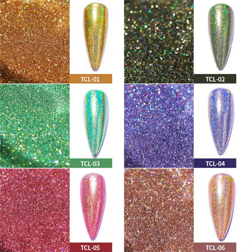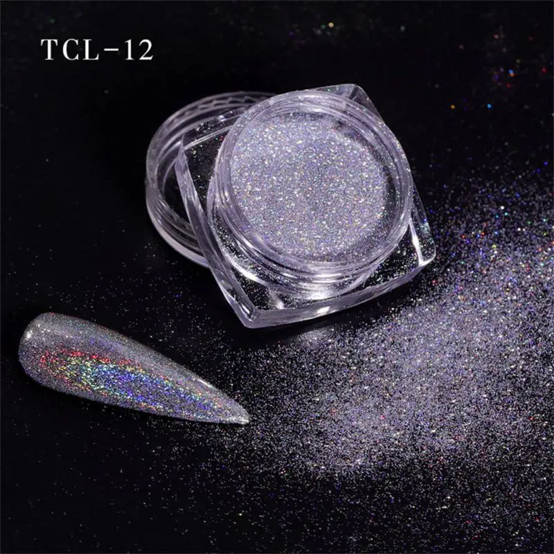 Polvo de uñas con purpurina reflectante, verde, rojo, polvo artístico para uñas, pigmento cromado brillante, decoración de manicura