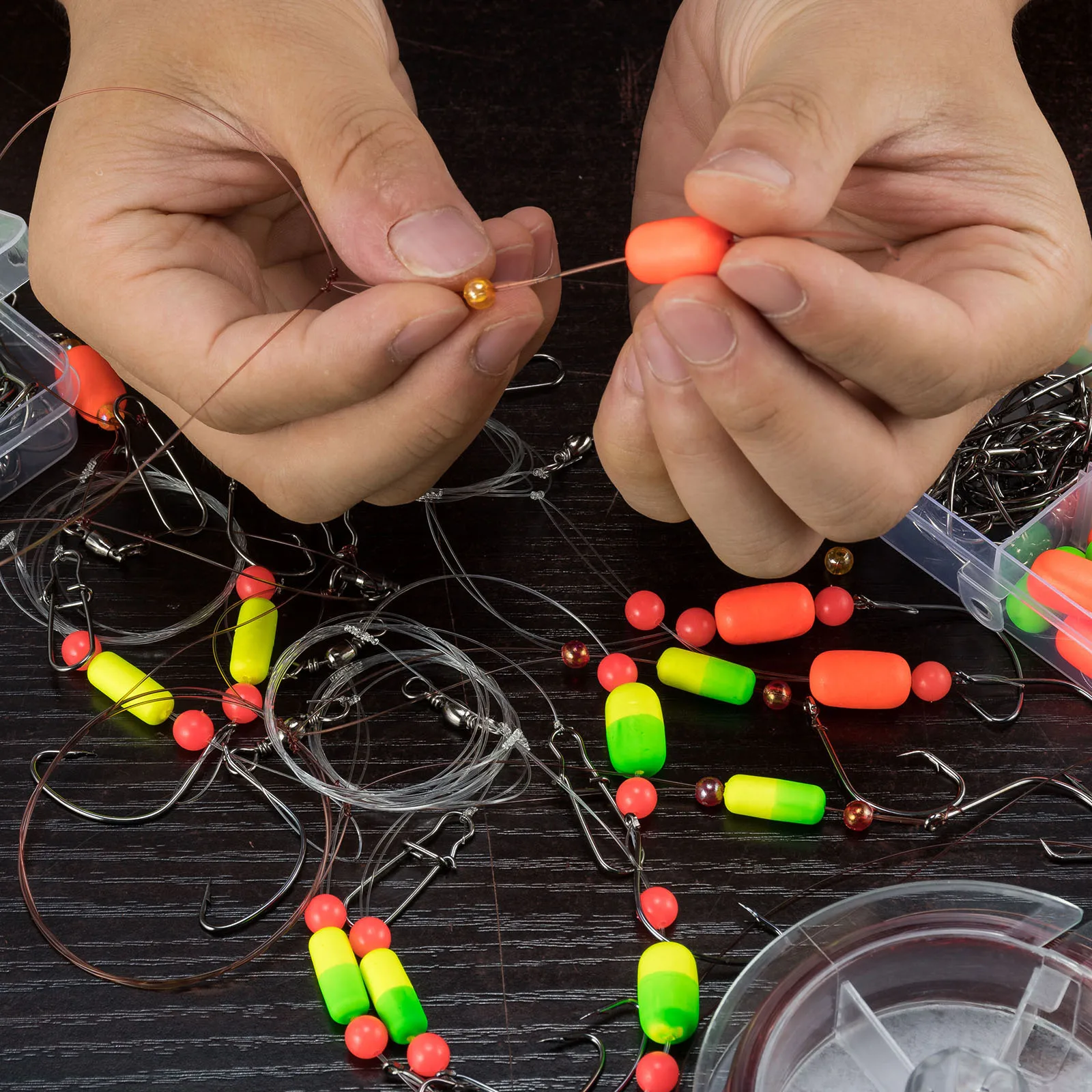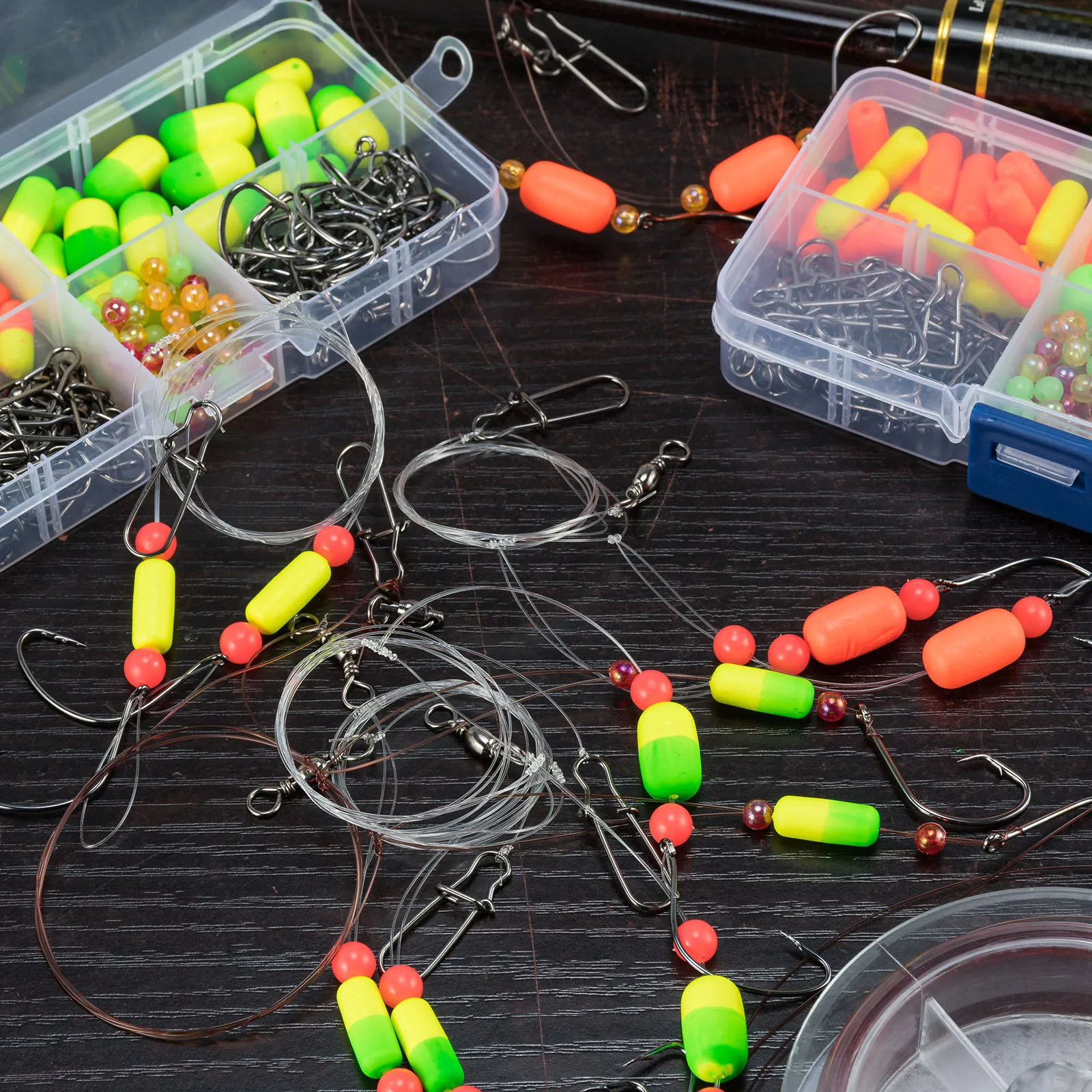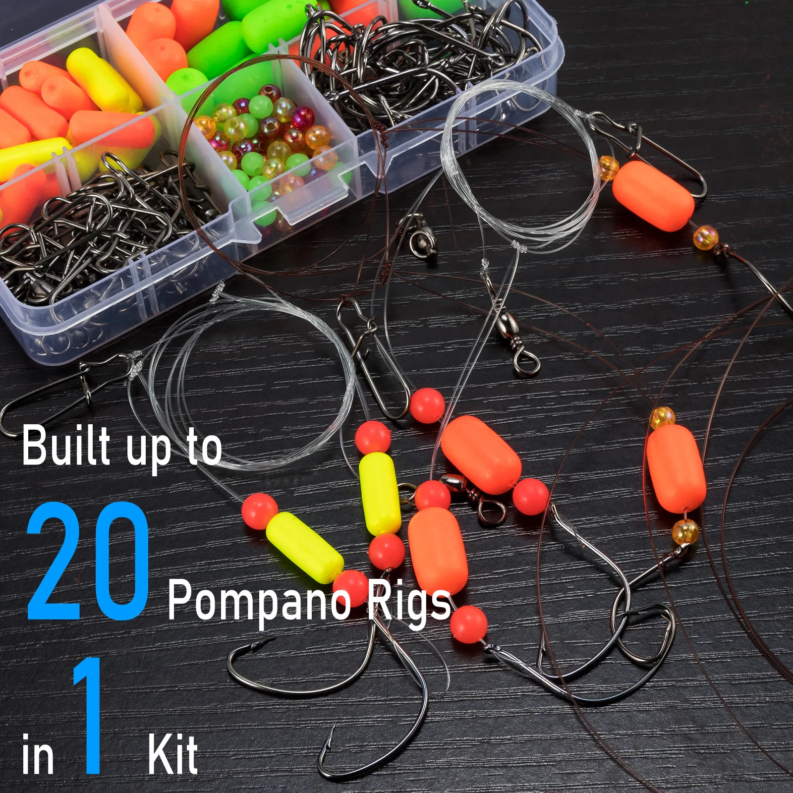 Gran cantidad de 200 piezas:Nuestro Kit de accesorios le permite componer por sí mismo un par de aparejos de pompano de 2 anzuelos con su propia línea de pesca, le permite personalizar su aparejo de acuerdo con sus preferencias (longitud, por ejemplo).