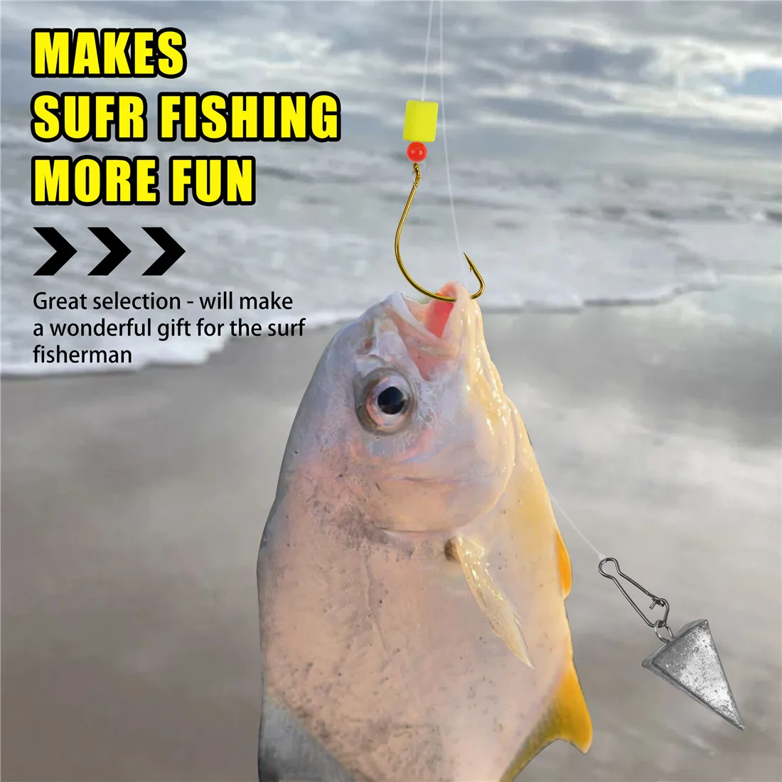 5 paquetes de aparejos de pompano para aparejo de pesca de Surf, anzuelos circulares de 3 cuerdas, cebo de pesca de Surf atado a mano en alta mar, aparejos de pesca de agua salada