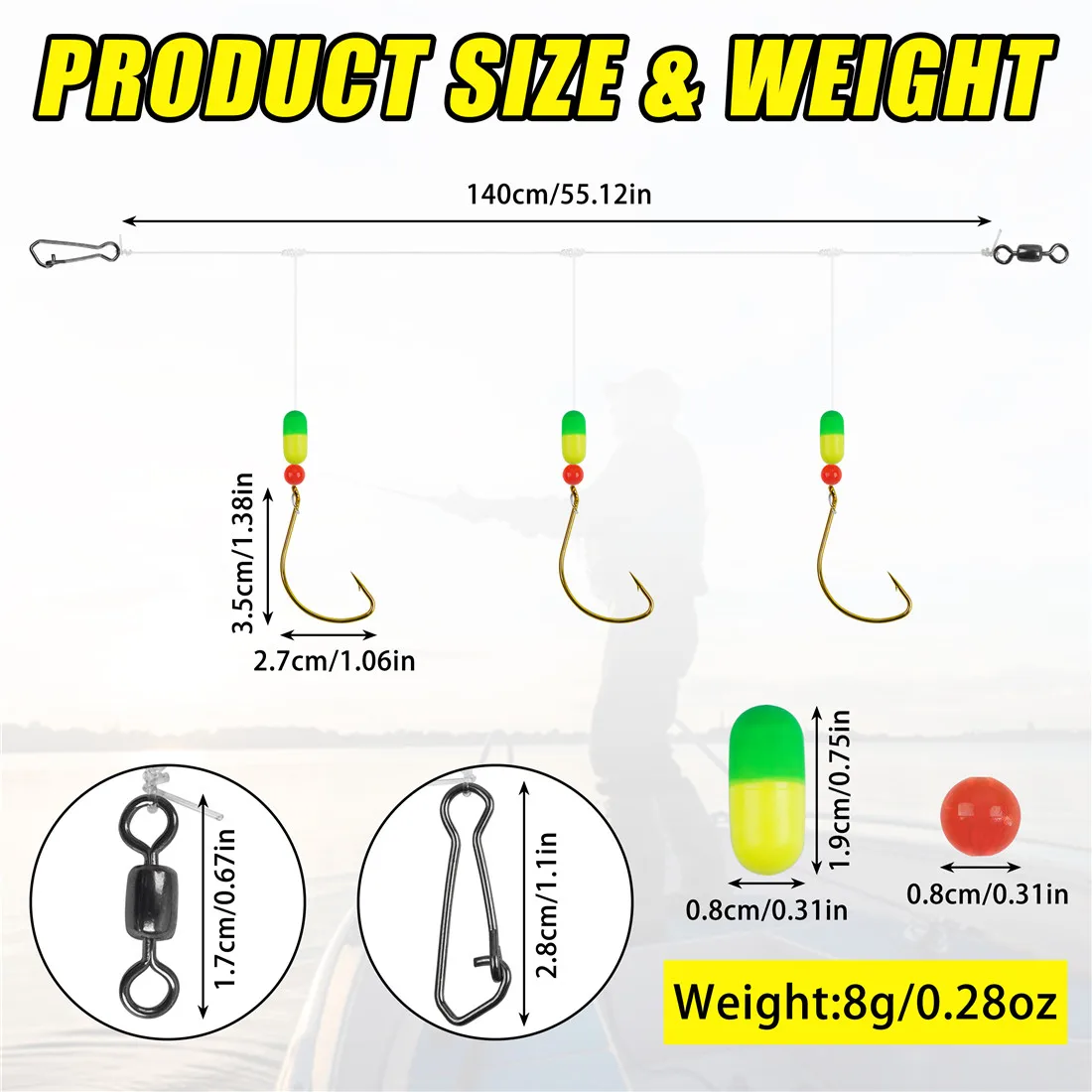 Material: Línea de nylon, ganchos de cuerda de acero de alto carbono, flotadores de espuma