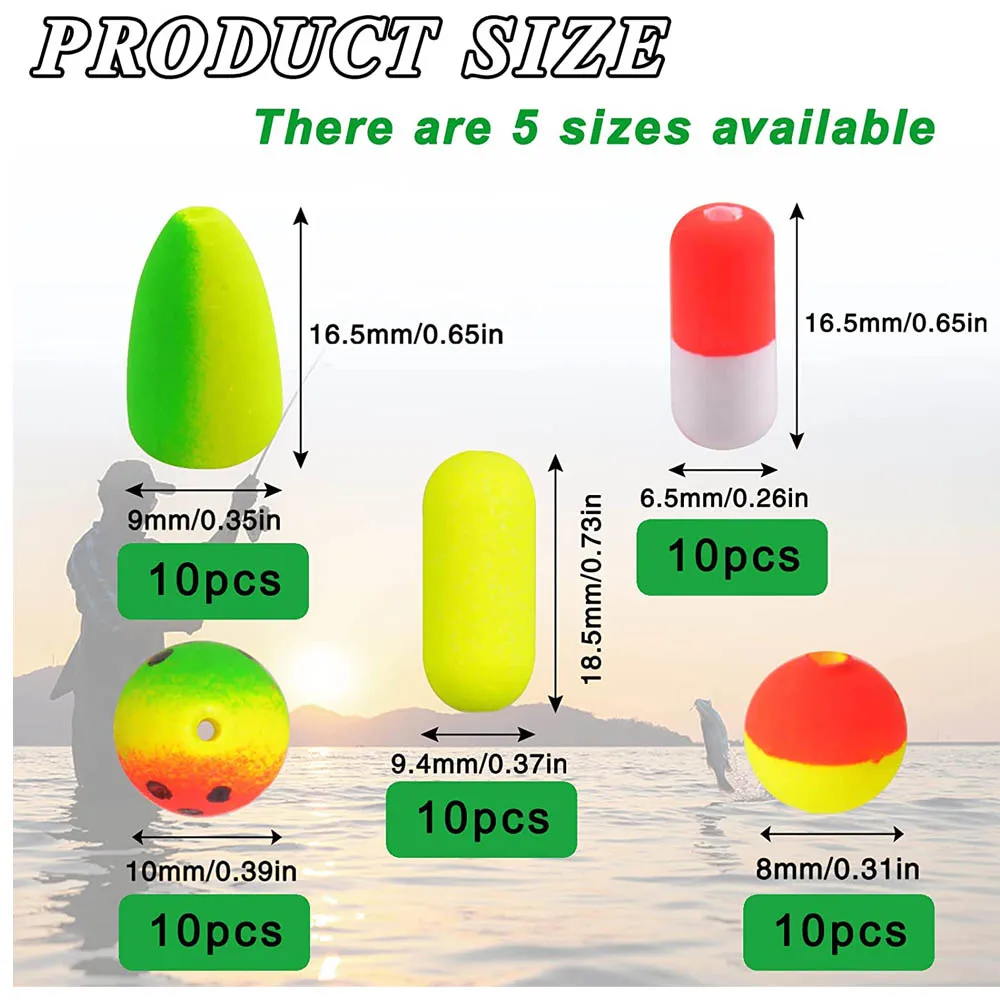 50 Uds. De flotadores de aparejo de pesca, pompano de espuma, aparejos de pesca, flotadores de Snell, boya de pesca, aparejos, accesorios, Kit de fabricación