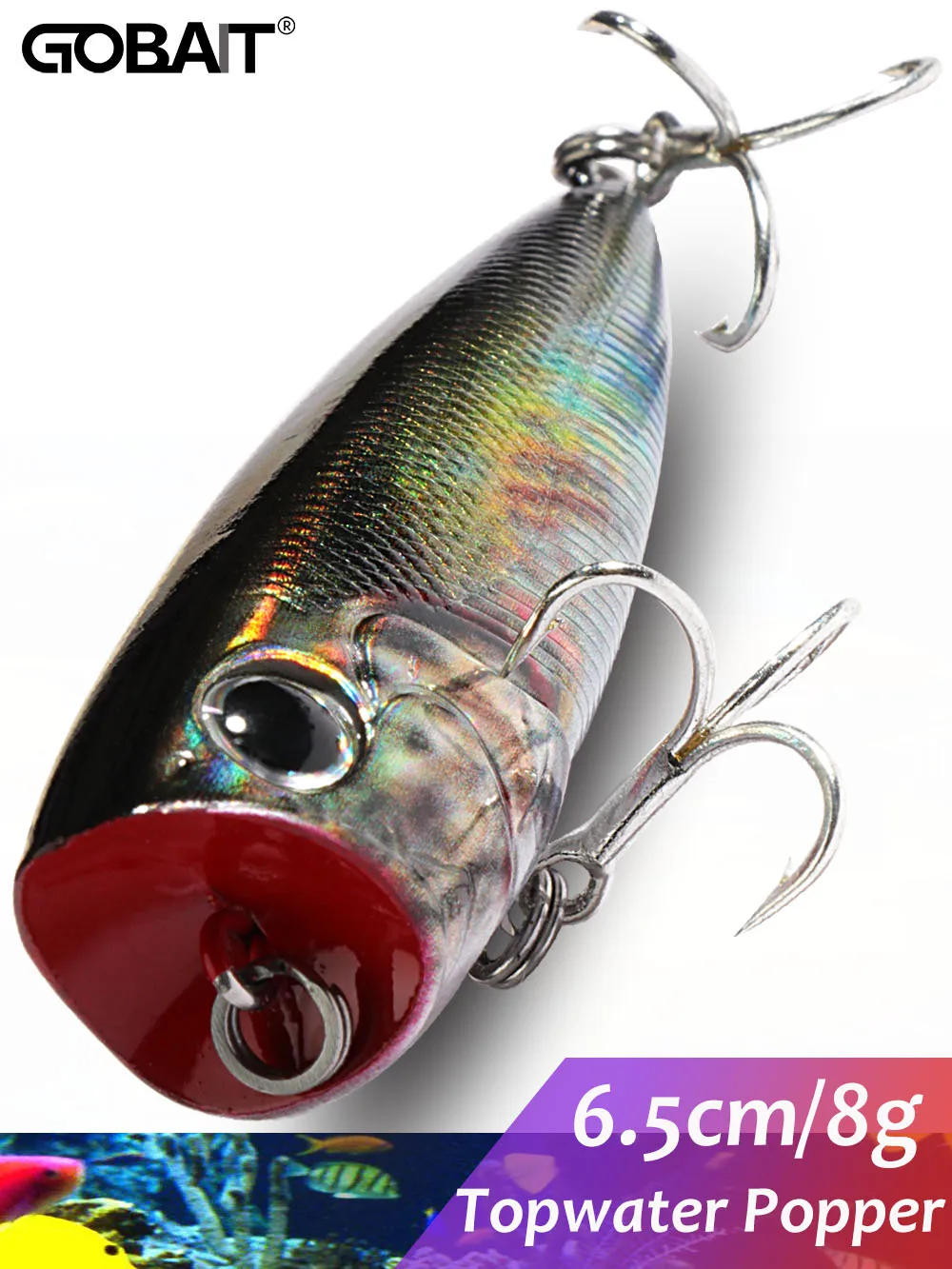 GOBAIT Top Water Floating Popper holographic skin fishing lure equipment excellent castbility imatate real fish vividly 3D pain strength treble hook electroplate plating sea kit pesca tool long casting spinning fishing Pike Golden dolphin fish Llampuga professional wobbler carp spoon spinner artificial bait