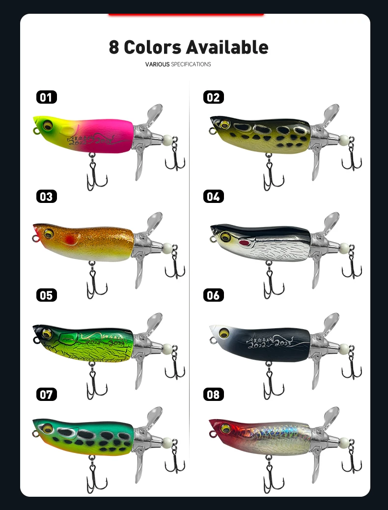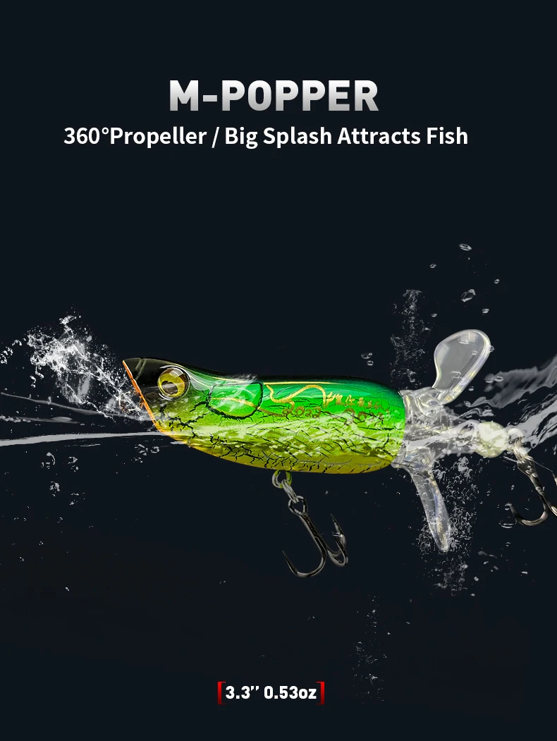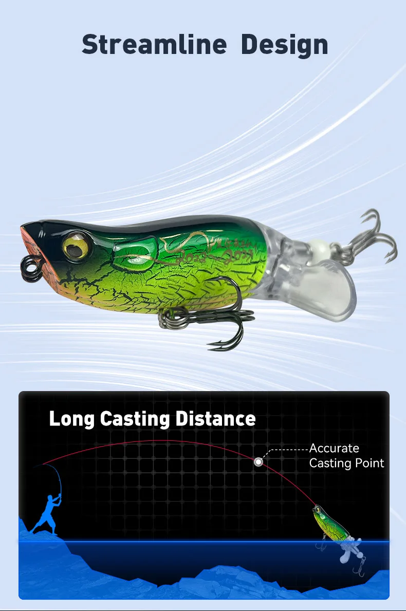 • Diseño Wobbler :El diseño wobbler de Popper Fishing Lure crea un atractivo visual único que seguramente atraerá a los peces desde la distancia.