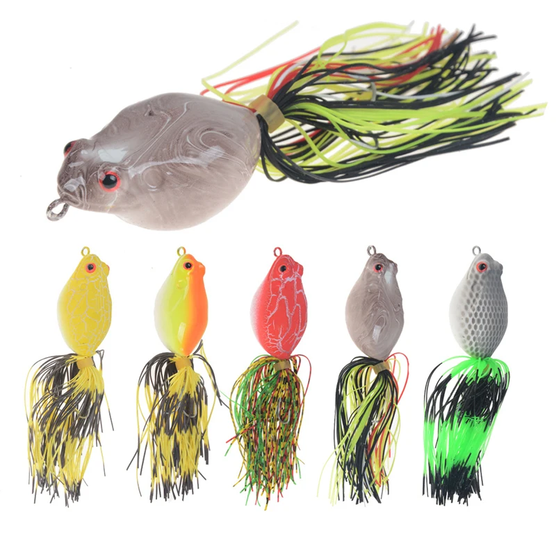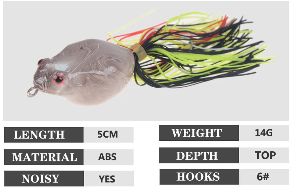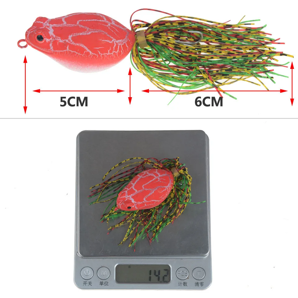 Popper-SEÑUELOS DE rana de 14g y 5cm, cebos blandos para cabeza de serpiente, señuelos de lubina, pesca de rana, superficie flotante