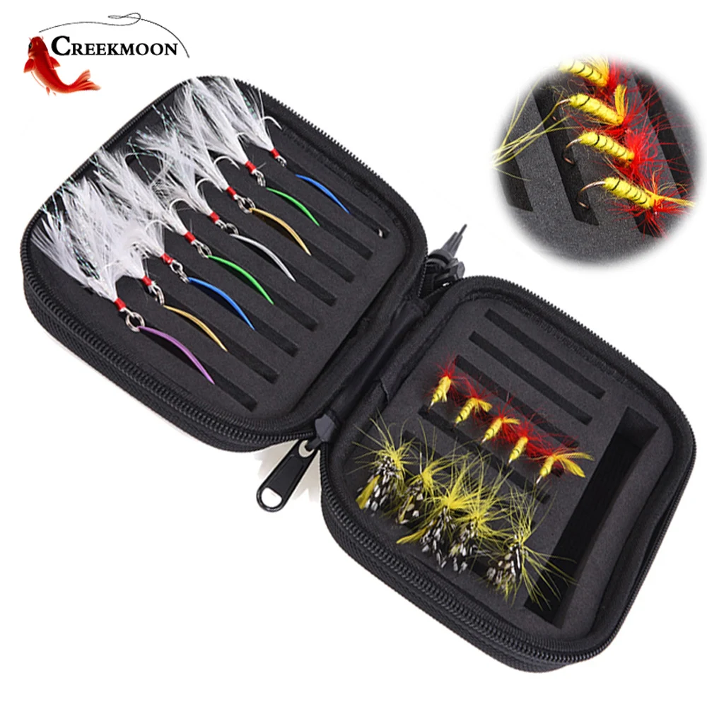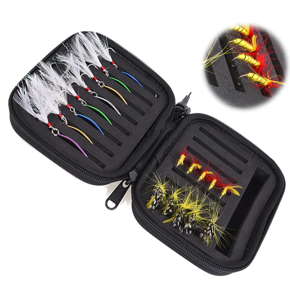 Portabale señuelo de pesca con mosca, bolsa de espuma giratoria, cuchara giratoria, cebo, lentejuelas, trucha, moscas, gancho de pescado, estuche de almacenamiento EVA, caja contenedora
