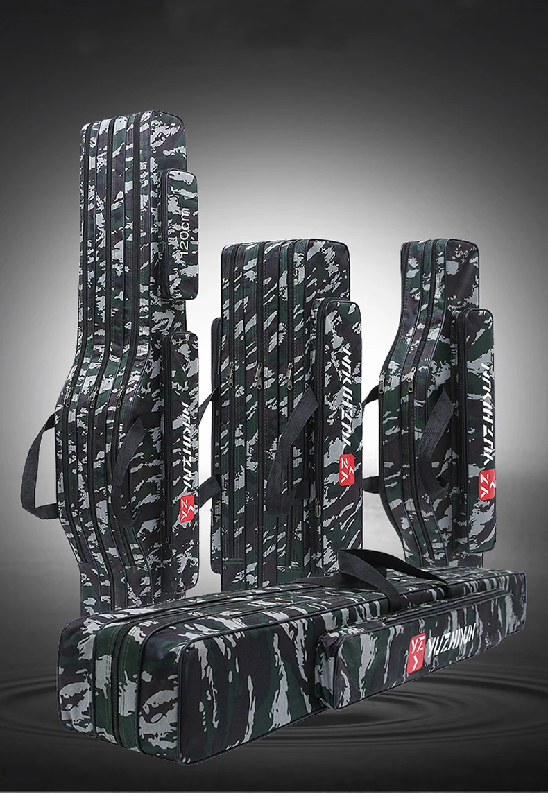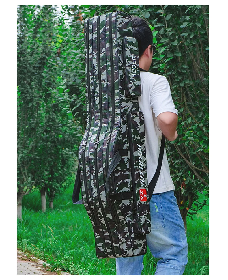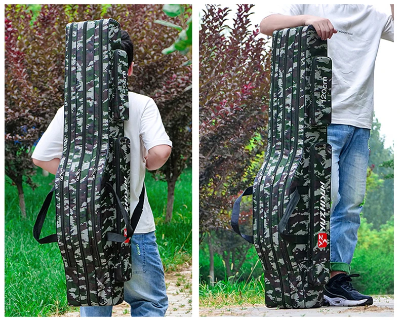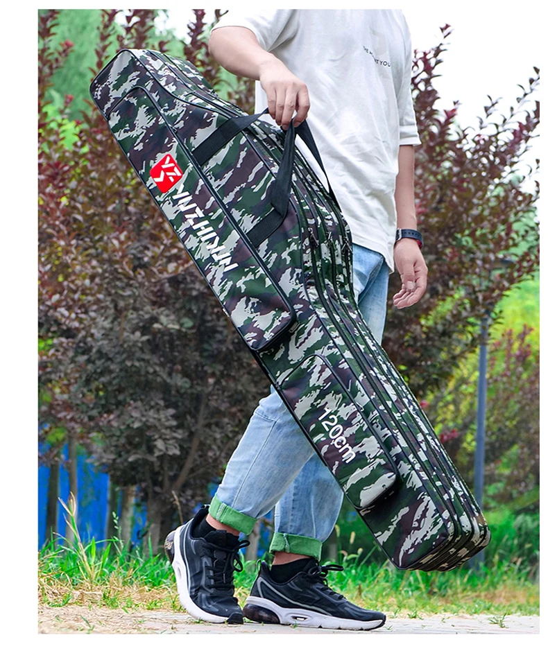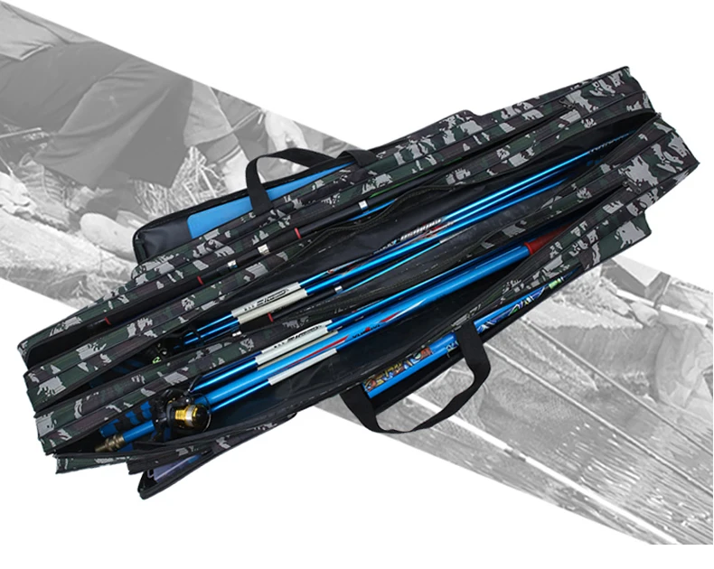 Portador de caña de pescar plegable portátil de 3 capas, bolsa de almacenamiento de herramientas de caña de pescar, estuche de aparejos de pesca X274GX, 130cm