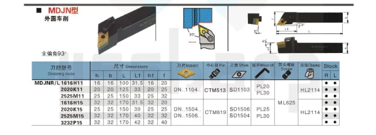 Soporte de torneado CNC MDJNL2525M15/soporte de herramienta de corte de máquina de torno