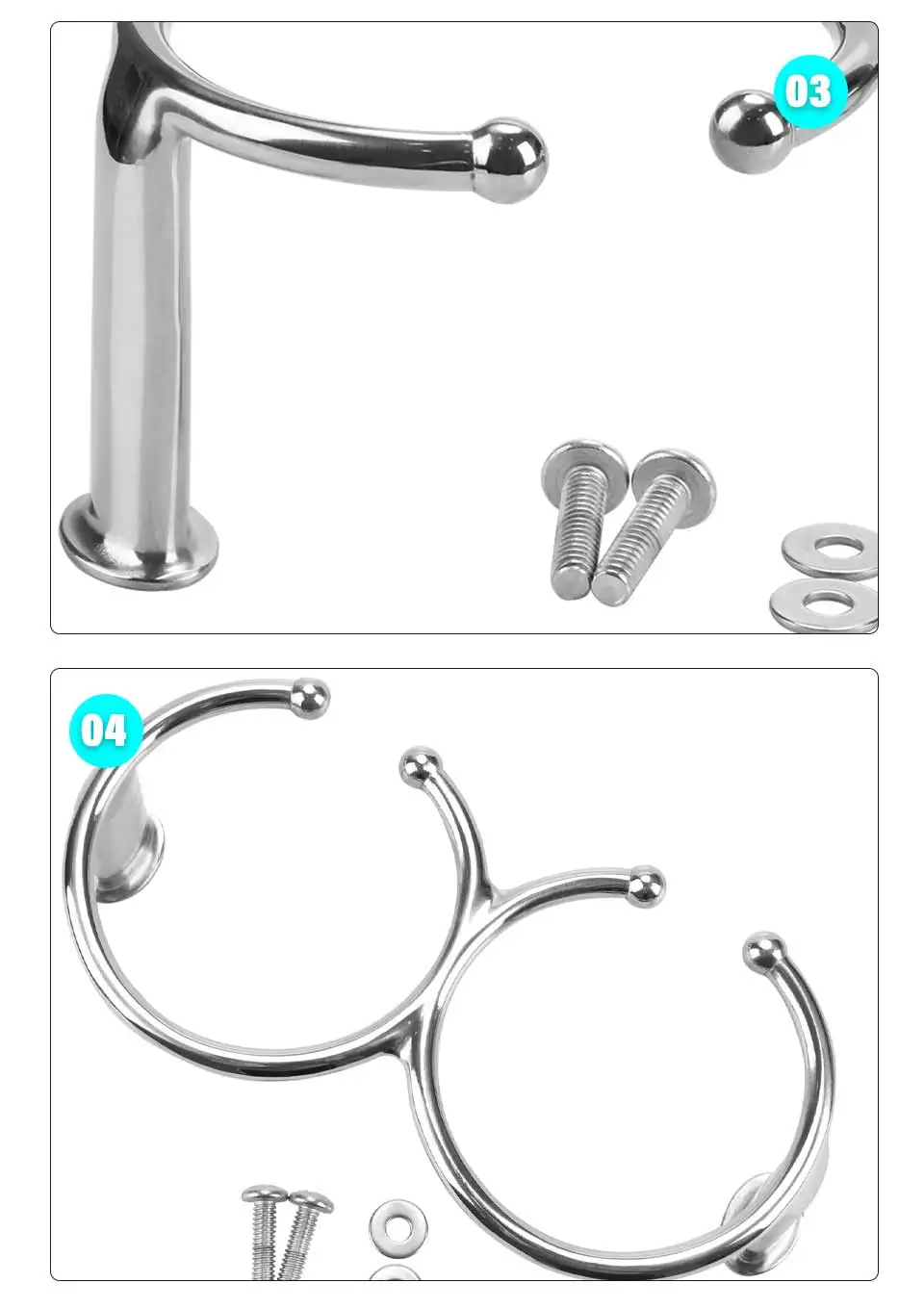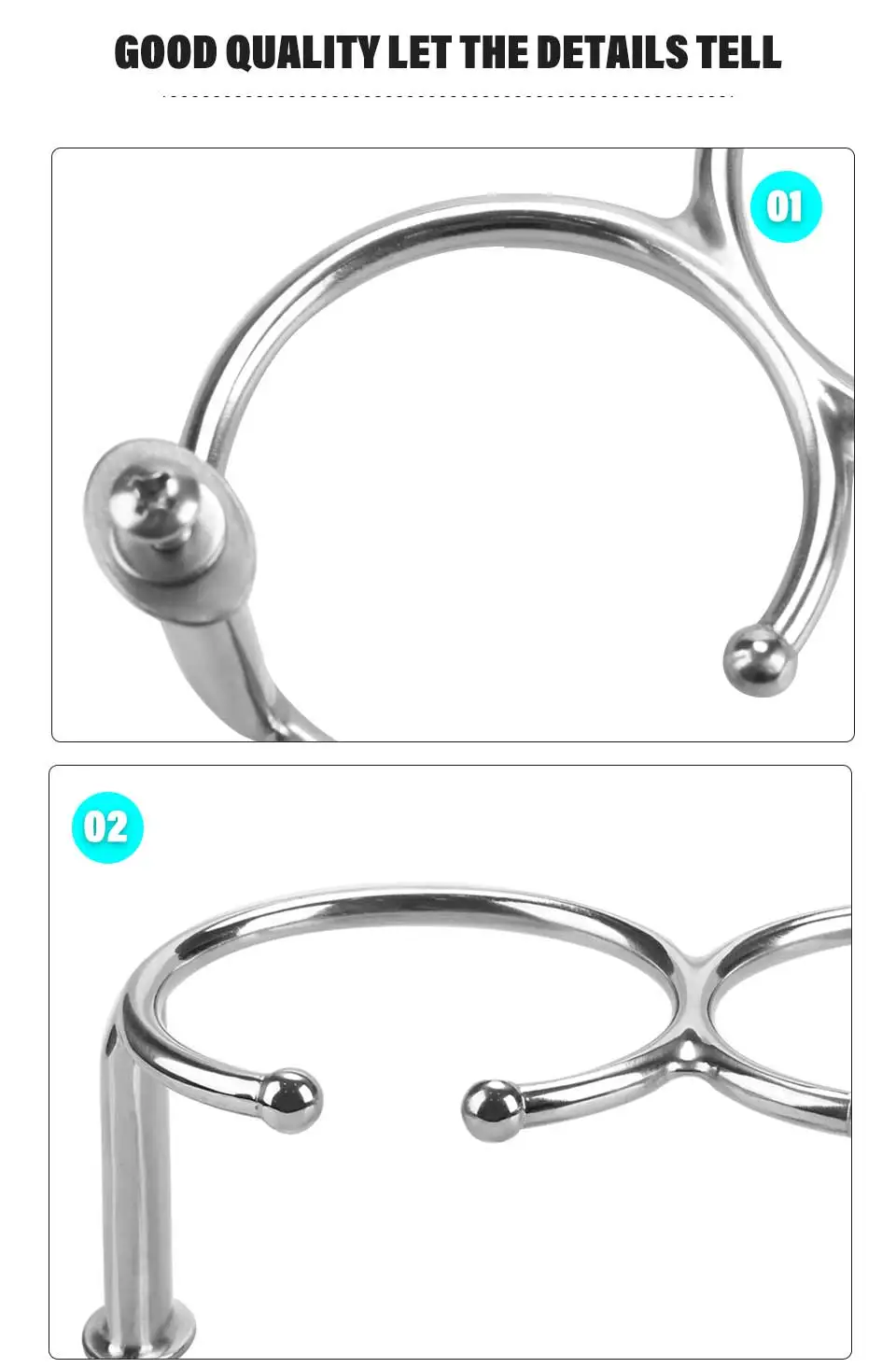 Longitud total de 8-1/4", cada anillo: 4-1/8" de diámetro, 3-1/2" de identificación.