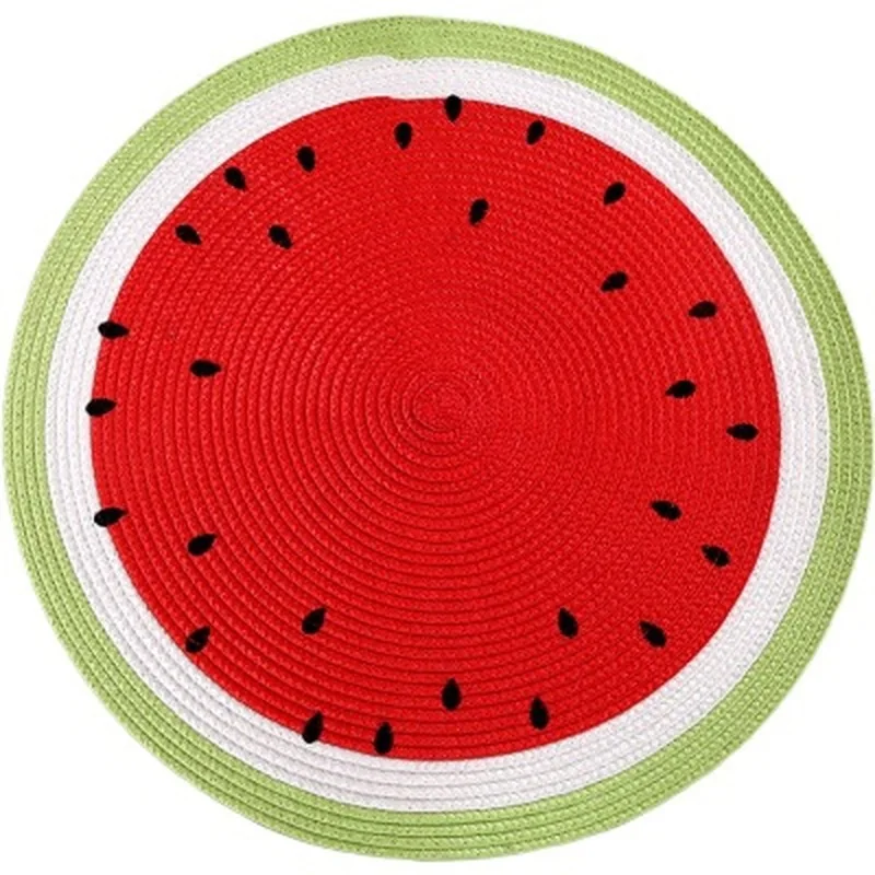 Posavasos para bebidas de sandía y limón, Mantel Individual redondo tejido de PP, fruta de dibujos animados, plato para mesa de comedor, accesorios de cocina, decoración del hogar