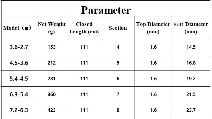 4. La longitud total de la varilla se puede cerrar, por ejemplo, 3,6 m se puede cerrar a 2,7 m, 4,5 m-3,6 m, 5,4 m-4,5 m, 6,3 m-5,4 m.