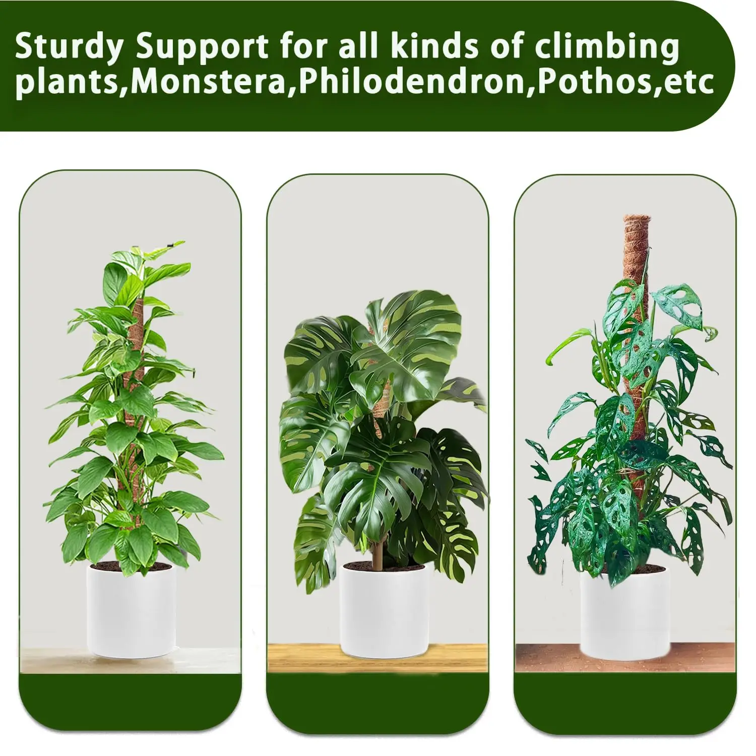REUTILIZABLE -Nuestros postes de musgo están hechos de fibras de coco totalmente naturales, un material orgánico sostenible que permite que las raíces aéreas de la planta penetren fácilmente, lo que hace que sea muy fácil para la planta adherirse y crecer, resistente a la abrasión y al óxido, y puede ser absolutamente seguro para la planta y el medio ambiente.