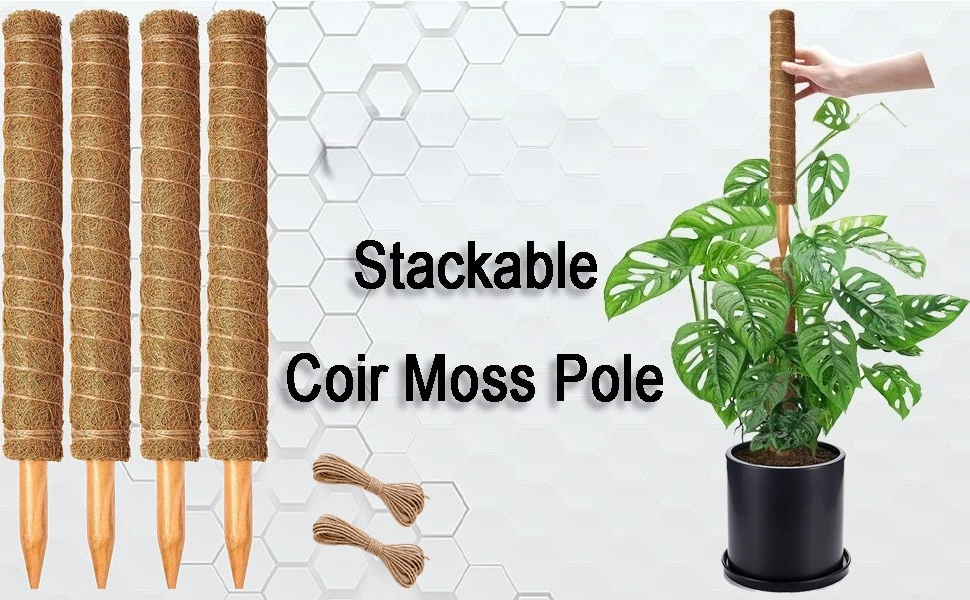 AMPLIA APLICACIÓN -Los postes de musgo para plantas trepadoras brindan soporte para una amplia variedad de plantas de interior y exterior, la fibra de coco proporciona un excelente agarre para las raíces aéreas, soporte ideal para una amplia variedad de plantas rebeldes, especialmente adecuado para Monstera, hippocastanum, plantas de tomate cereza, pothos, scindapsis., Hoya, plantas de queso suizas, moneywort, Ivy, cattail, enredad de vainilla, orquídea tigernut, clorofillio, enredader