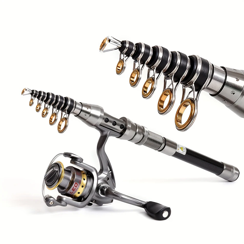 1. Esta caña de pescar está hecha de fibra de carbono, resistente y duradera.