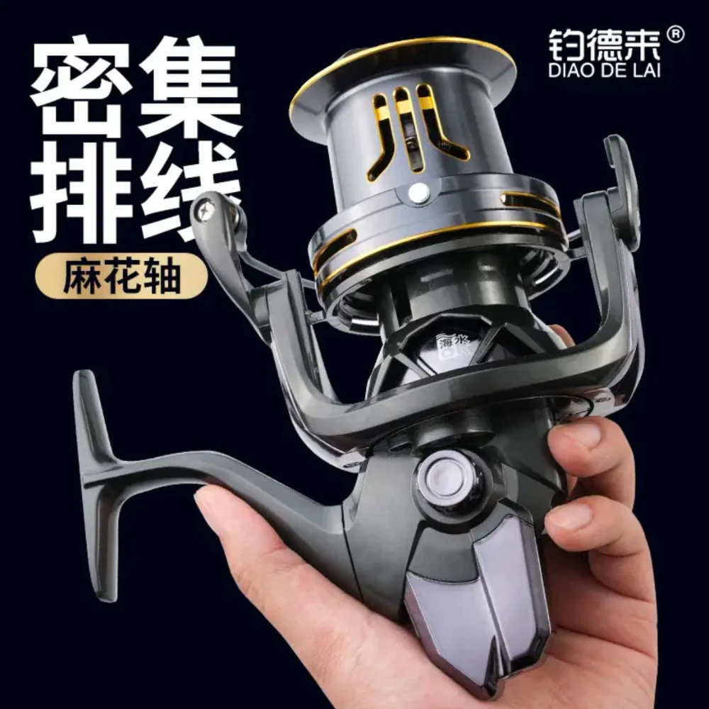 Potente rueda de pesca tipo tiro largo Serie 9000 12000 14000 Copa de línea de metal oblicua Sin espacio Carrete giratorio de agua salada de alta velocidad 4.1:1
