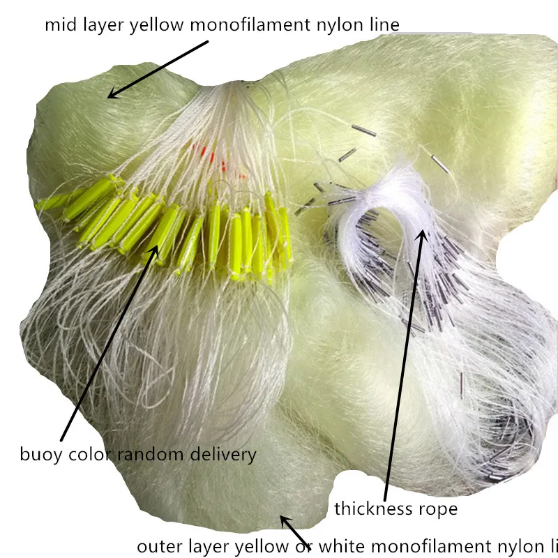 Fuerte red de pesca de 3 capas, adecuada para ríos, lagos, embalses, estanques, etc., es un buen ayudante para los pescadores