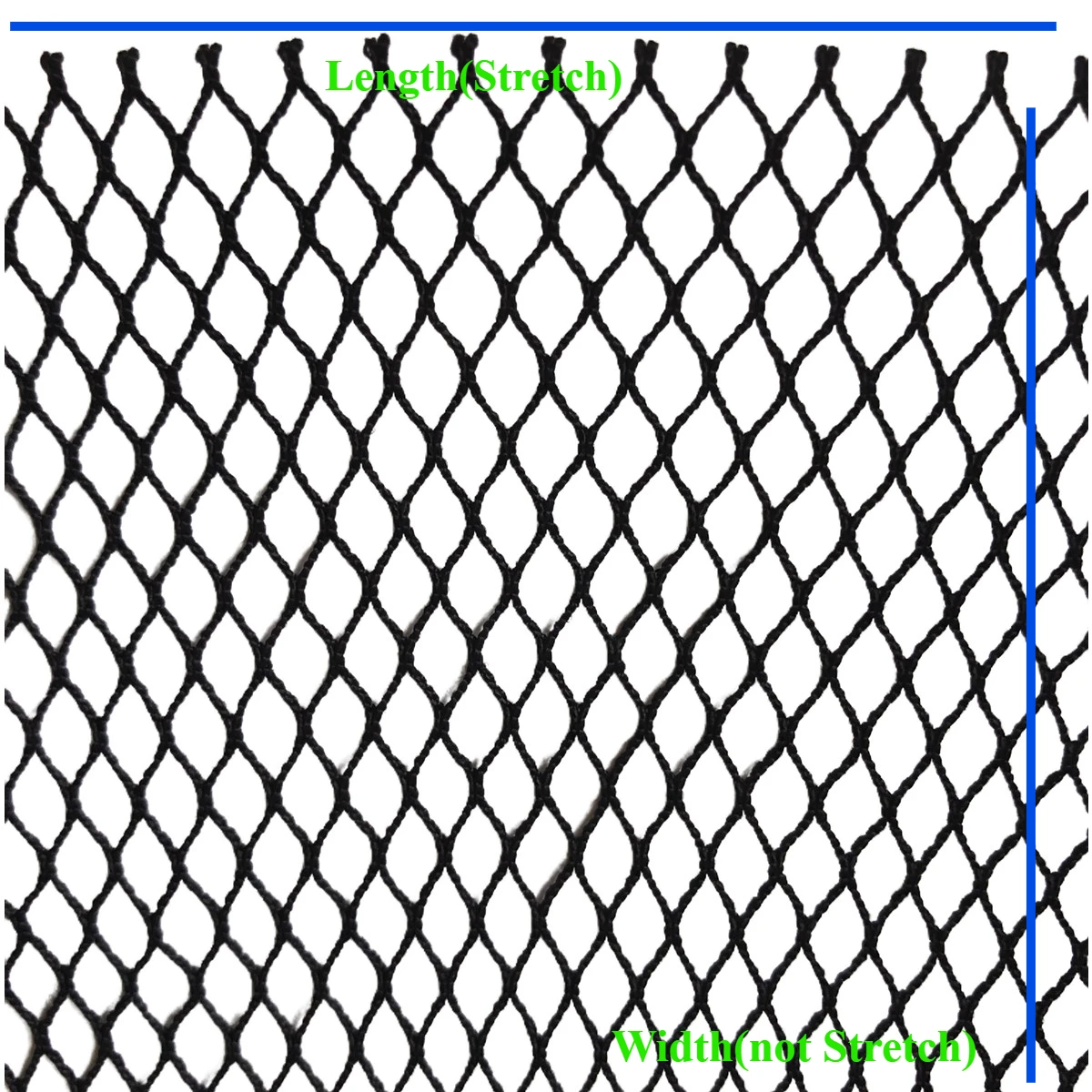NOTA1:--Métodos de medición1.width: Dirección que no se puede estirar2.longitud: Dirección que se puede estirarNOTA2:1. ¡Aconsidere el servicio de atención al cliente en línea para otros tamaños!2.mesh 3 mm si hay una longitud excesiva de 10 m que es necesario empalmar3.mesh 5 mm si hay una longitud excesiva de 9 m que es necesario empalmar