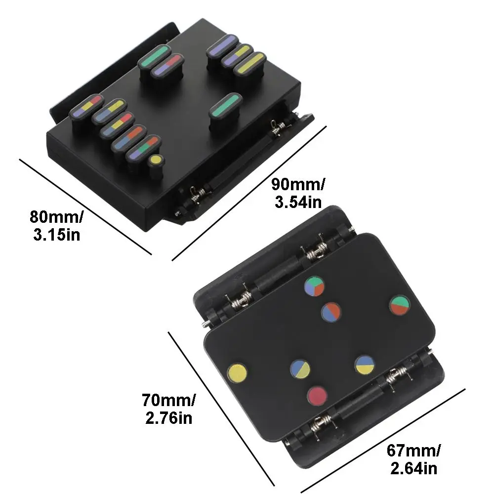 Tamaño: Herramienta de acordes de guitarra: 90 * 80 * 40 mm (3,54 * 3,15 * 1,57 pulgadas), herramienta de acordes de ukelele: 67x70x30 mm (2,64x2,76x1,18 pulgadas)