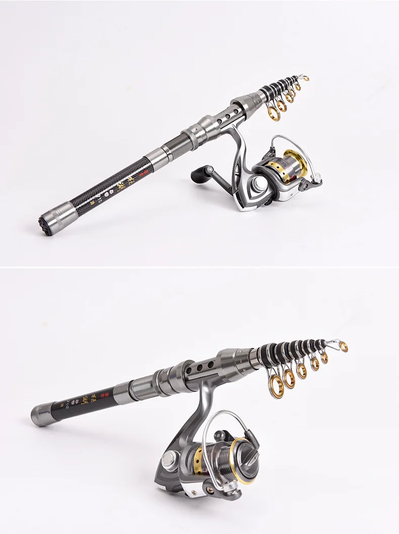 Características: esta caña de pescar está hecha de fibra de carbono y tiene las características de alta dureza. El asiento de la rueda está tallado en material de aleación de aluminio, que es ligero y firme. El anillo Guía adopta la combinación de ABS, acero inoxidable y cerámica, y solo la configuración de gama alta adoptada por la caña de pescar de gama alta.