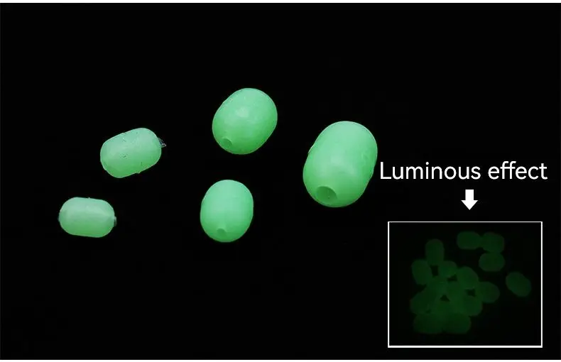 PRO BEROS-Cuentas de pesca luminosas de goma suave, cuentas de fregadero brillantes para anzuelos triples, plataformas de pesca, brillo verde en la oscuridad, 100 Uds.