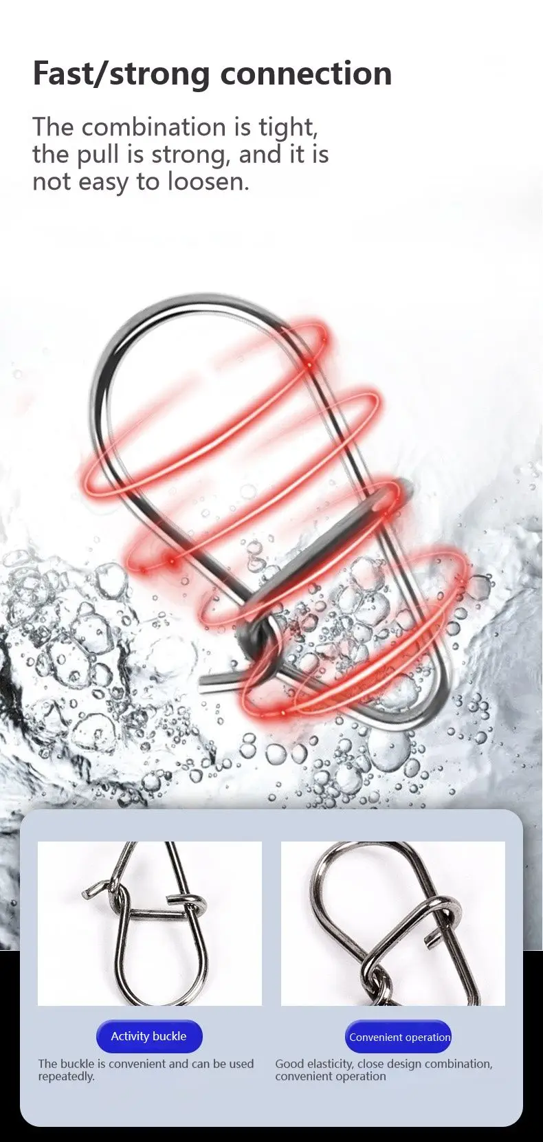 PRO BEROS-Pin de Pesca enganchado a presión, accesorio de acero inoxidable 100, barril de Pesca giratorio, Conector de señuelo, 50-304 Uds.