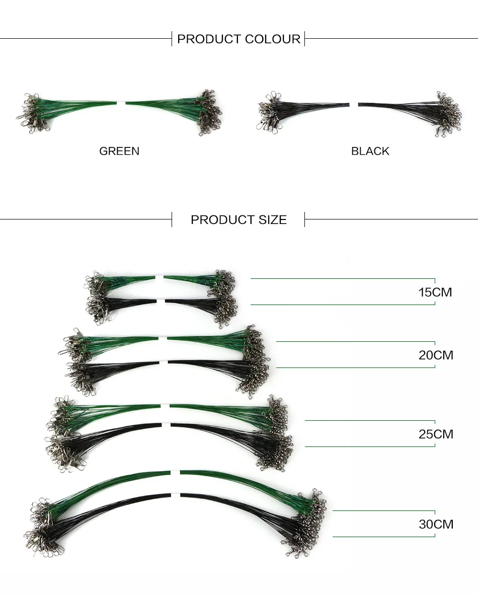 PRO BEROS-sedal de pesca de acero antimordedura, 15cm-30cm, líder de alambre con cierre doble giratorio, accesorio de pesca a presión, correa de núcleo de plomo, 25 uds.