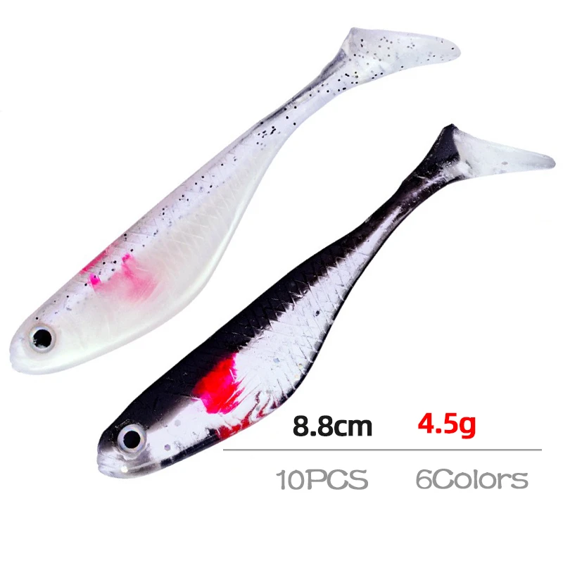 PRO BEROS-SEÑUELOS blandos de pesca de 10 piezas, 8,8 cm, 4,5g, sábalo, gusano, Swimbaits, señuelo suave de silicona para pesca de carpa