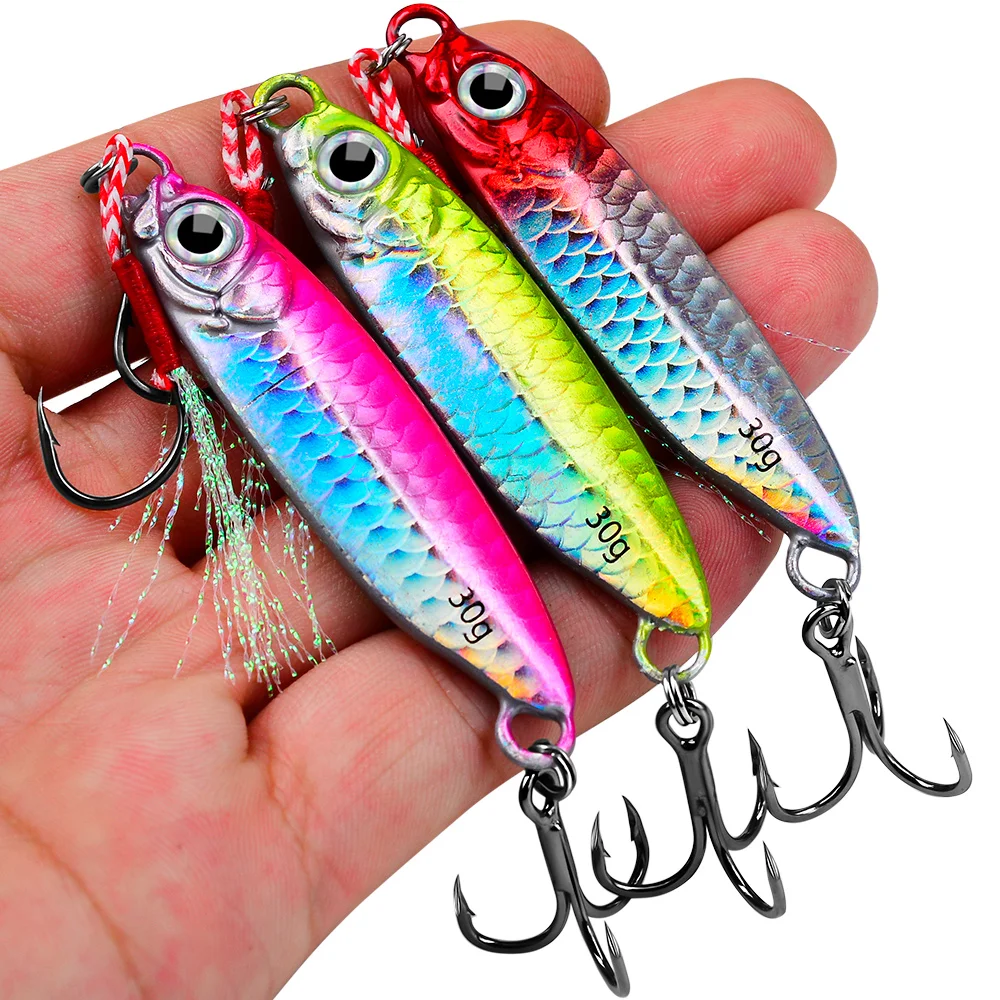 PROBEORS-señuelo de pesca con plantilla de Metal, caja con cebo de 7g/10g/15g/20g/25g/30g, atractor de trucha, perfecto para aventuras de pesca en el mar, 5 uds.