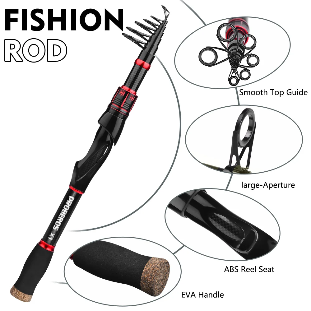 PROBEROS 1 cañas de pescar de fibra de vidrio ultraligeras versátiles, ligeras, 1,8 m/2,1 m/2,4 m, cañas de pescar telescópicas portátiles para exteriores