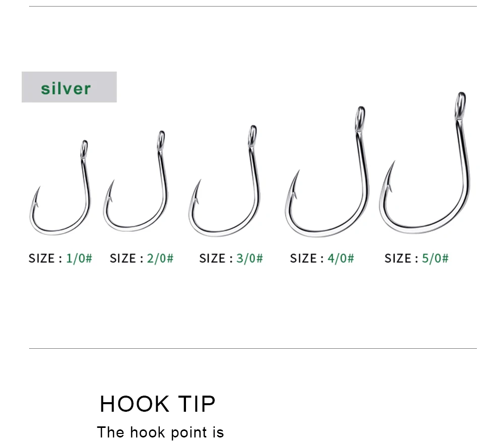 PROBEROS 10/50 piezas 1/0 # -5/0 # Gancho único de acero rico en carbono con púas, duradero, antioxidante para pesca de carpa lubina, venta al por mayor