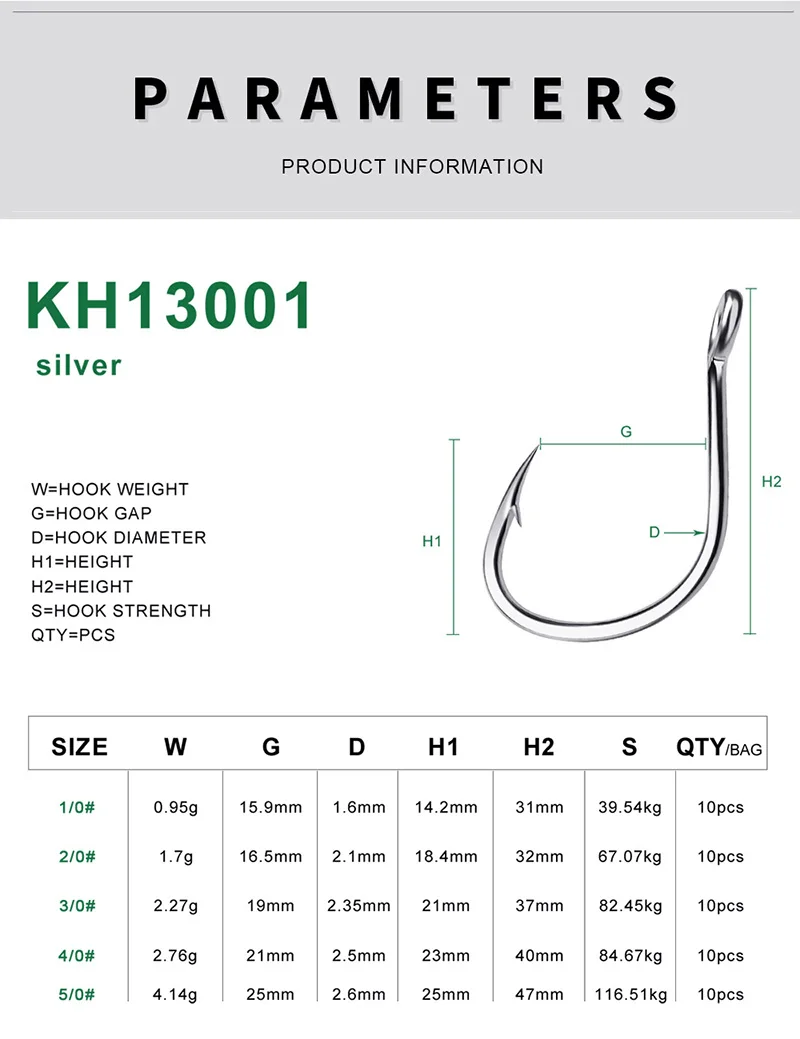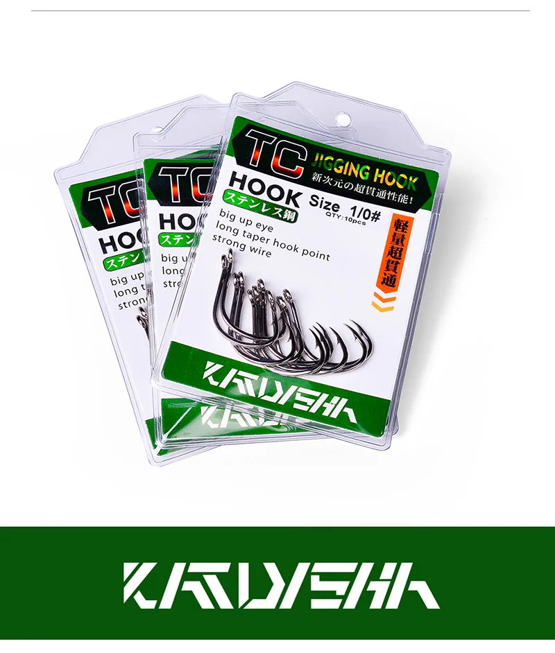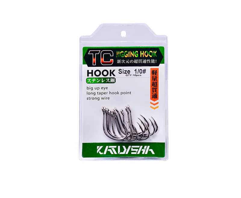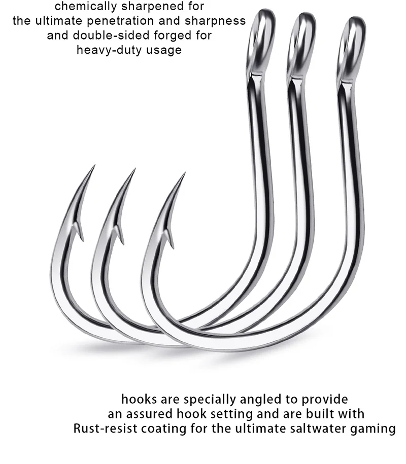 PROBEROS 10 Uds anzuelos de pesca con cabeza de plantilla de manivela 1/0-5/0# Anzuelos de carpa de un solo círculo con púas, anzuelos de acero con alto contenido de carbono, aparejos de pesca