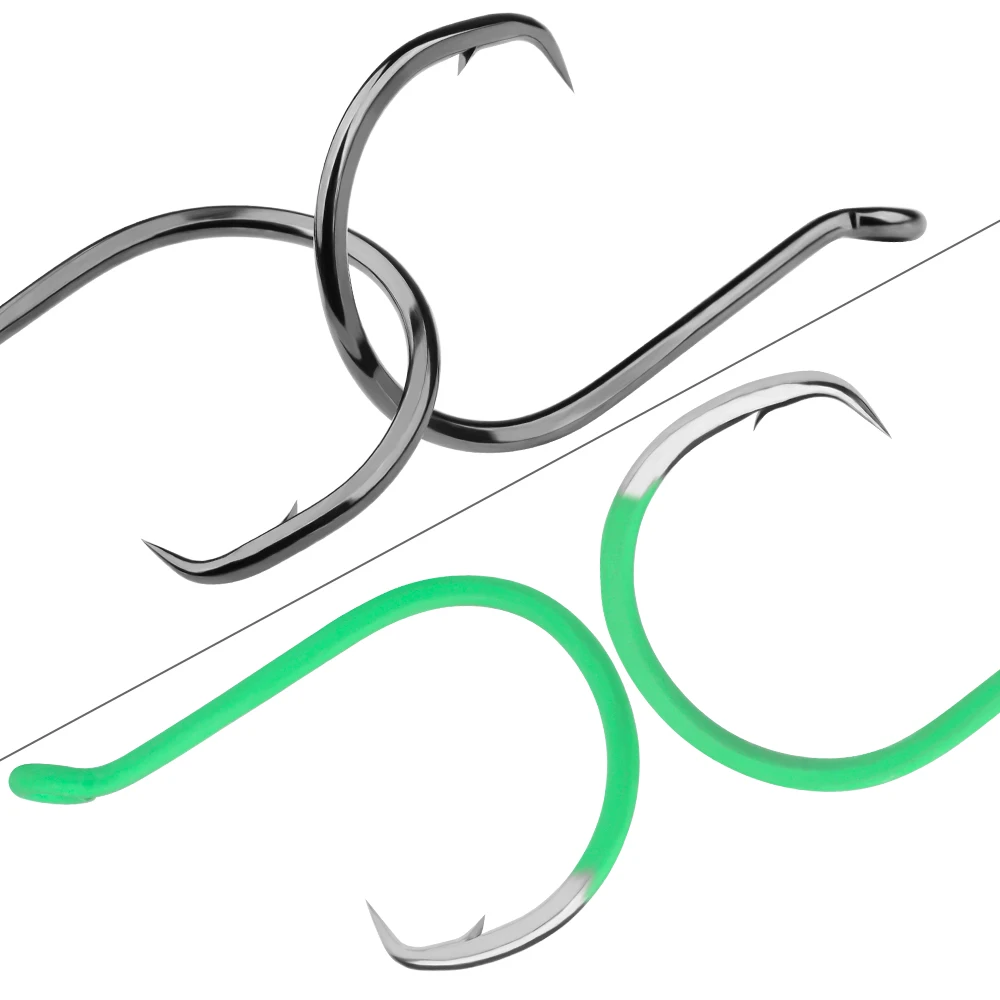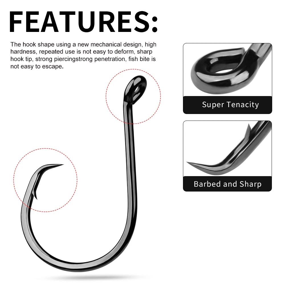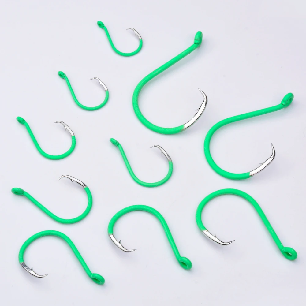 Estos anzuelos son resistentes y de alta calidad. He estado usándolos para pescar pargos a 60 metros de profundidad en Nueva Zelanda. Brillan intensamente y tienen un orificio de buen tamaño en la parte superior para líneas de monofilamento de 60/80 lb. He comprado varias tallas en múltiples ocasiones. Proberos Fishing es un nombre reconocido; todo el equipo de esta marca ha sido resistente y confiable.