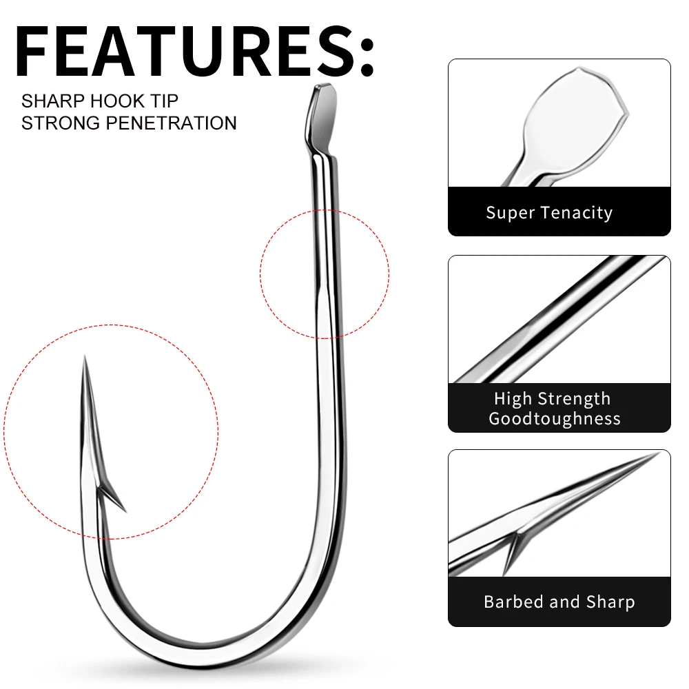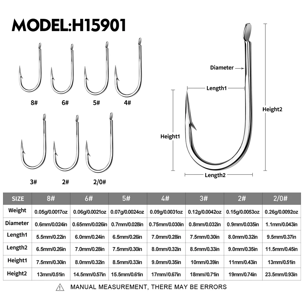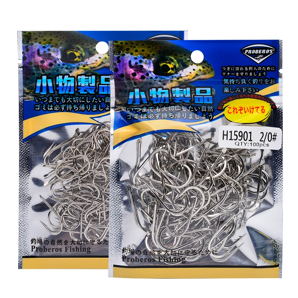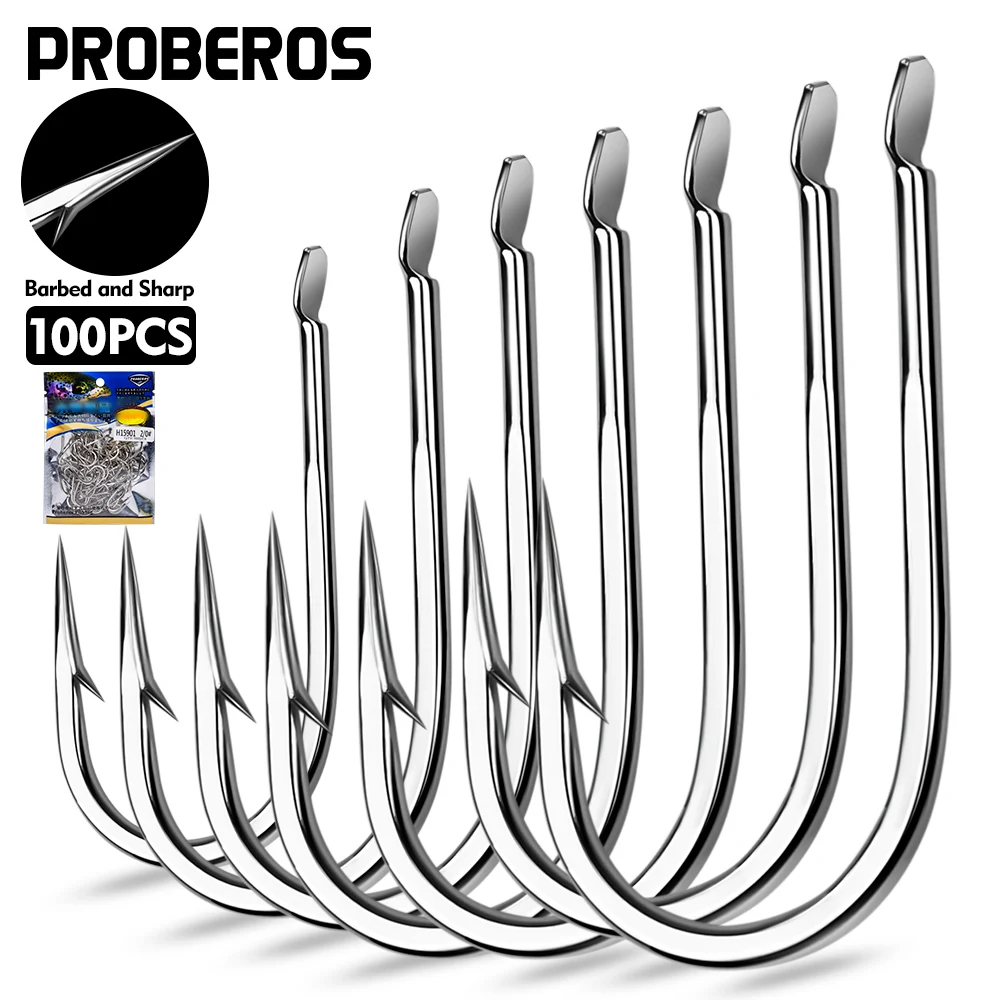 PROBEROS 100 piezas de gancho de púas afilado de acero al carbono tamaño 2/0 # -8 # se puede utilizar para agua dulce, accesorios de pesca en el mar en la playa.