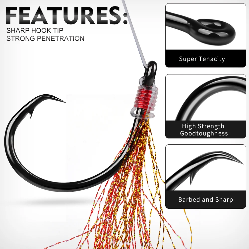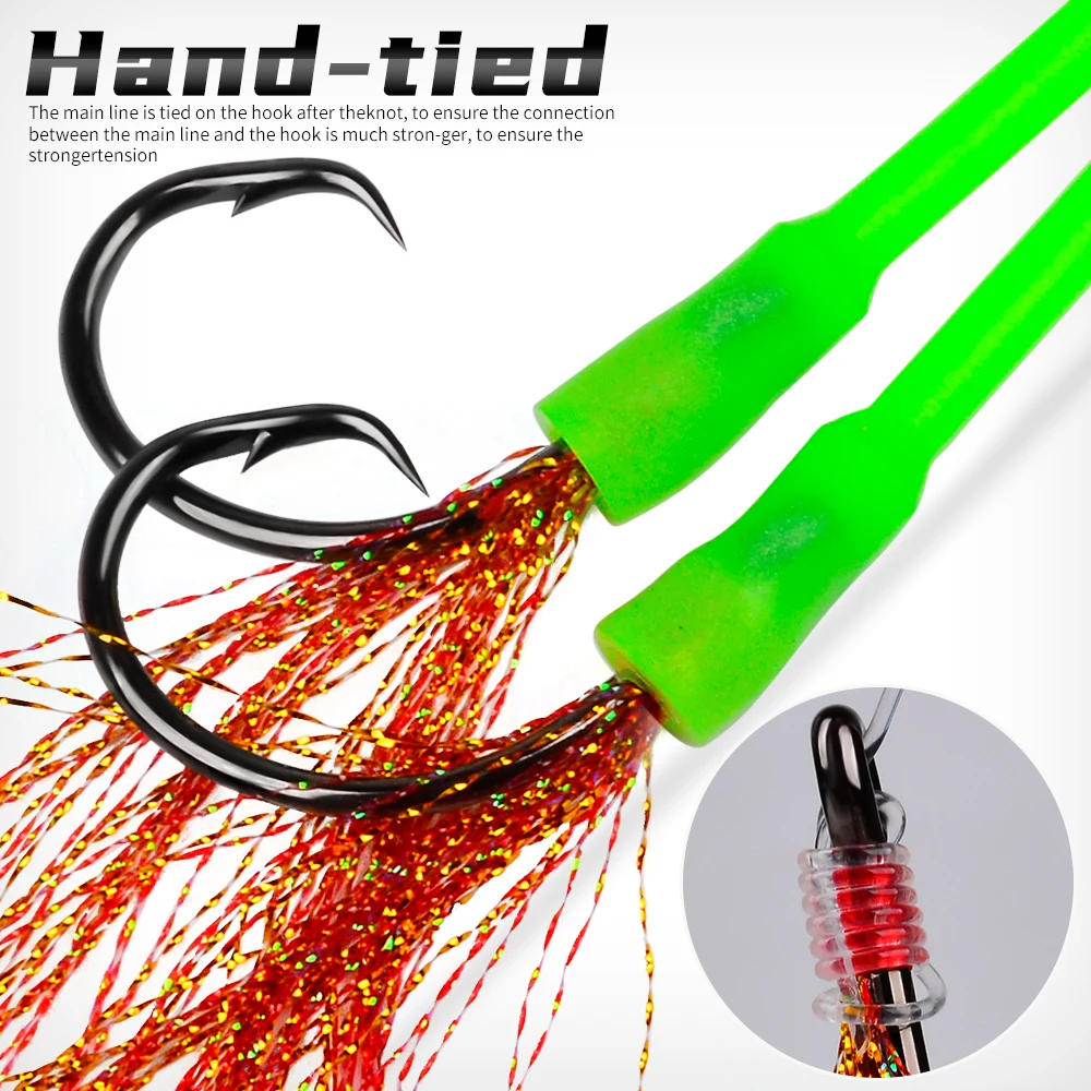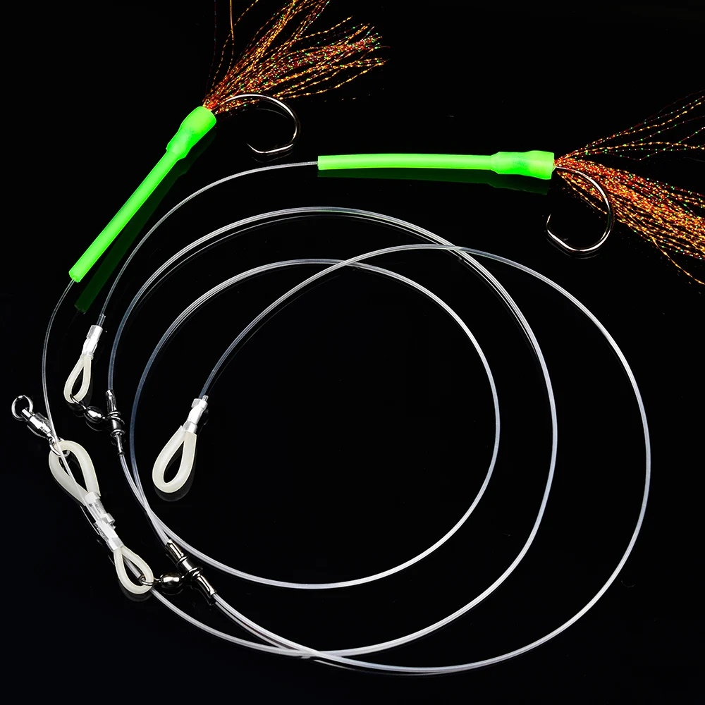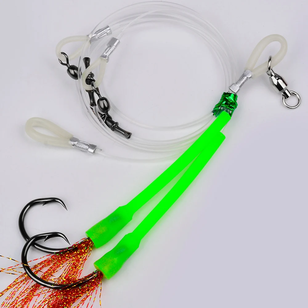 Proberos 2 piezas luminosas atadas a mano aguas profundas Hapuka Groper Cod Rig, Flasher Sabiki Rig con gancho circular de atún 1/0 3/0 5/0 7/0 10/0,