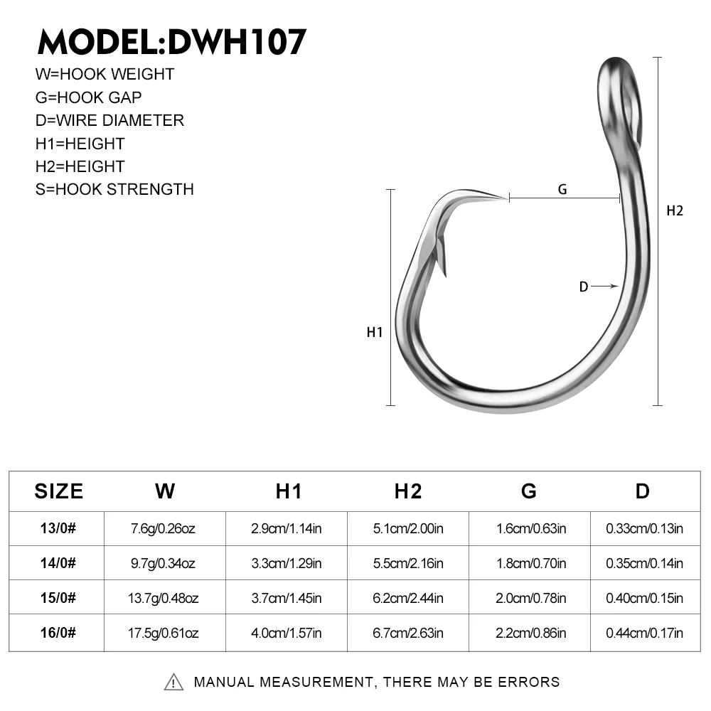 PROBEROS 5 piezas Anzuelos de pesca de acero inoxidable, tamaño 13/0 # 14/0 # 15/0 # 16/0 # son muy adecuados para la resistencia a la corrosión marina y b.