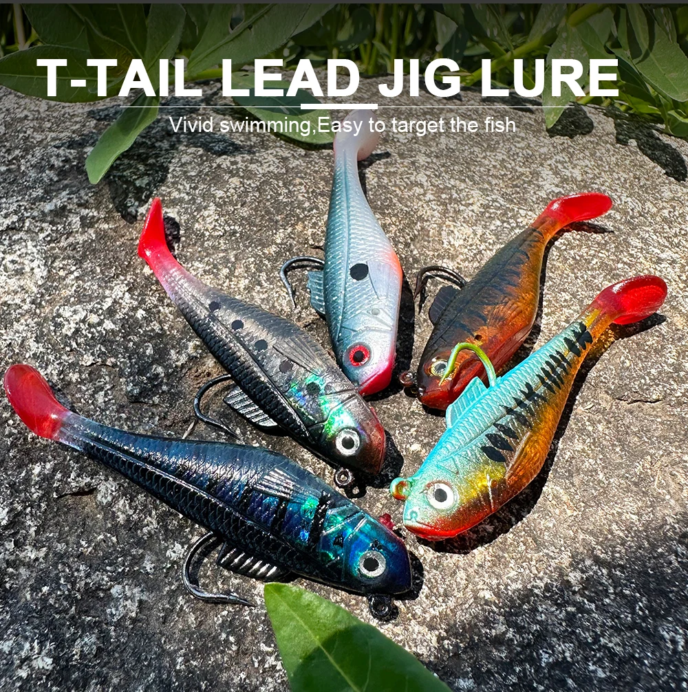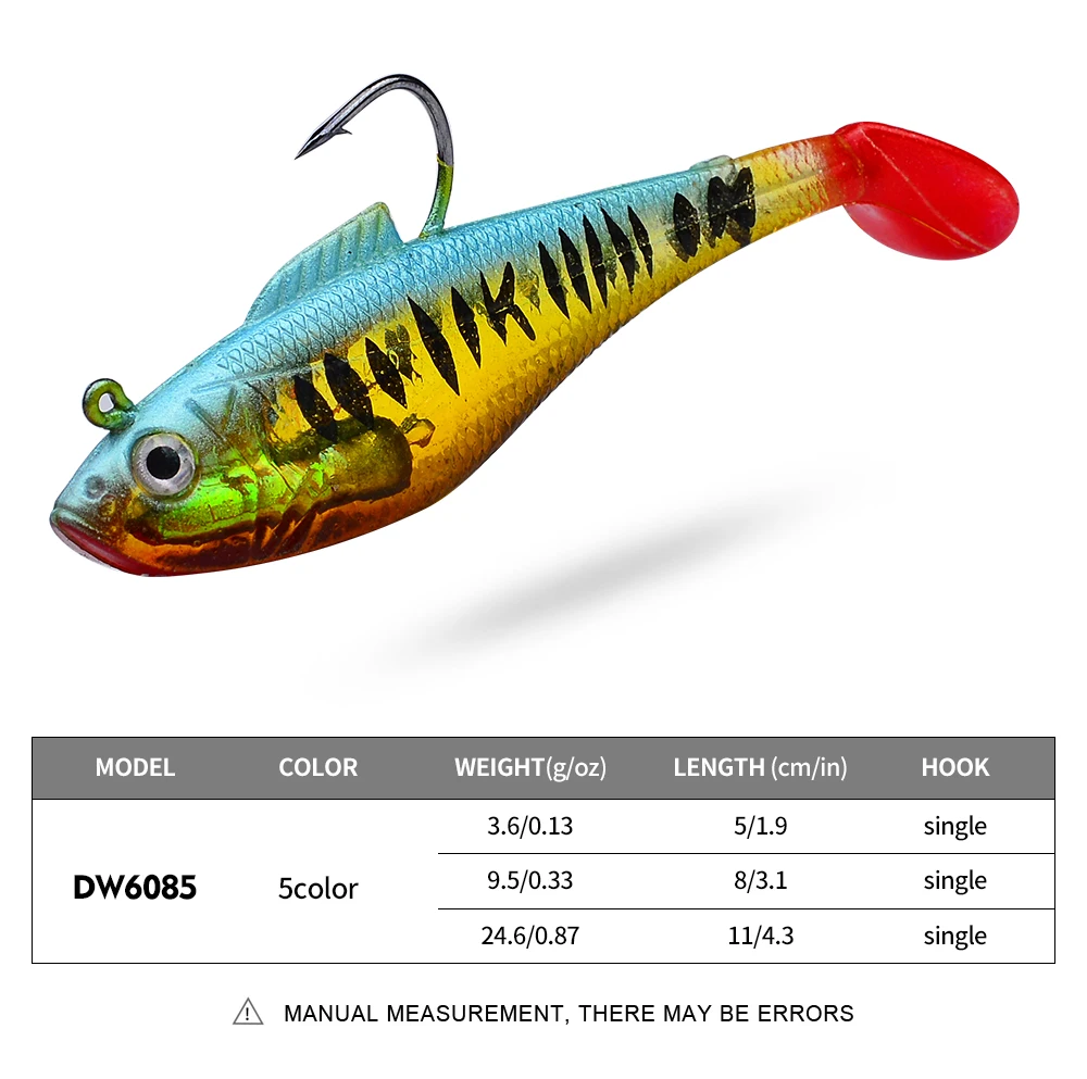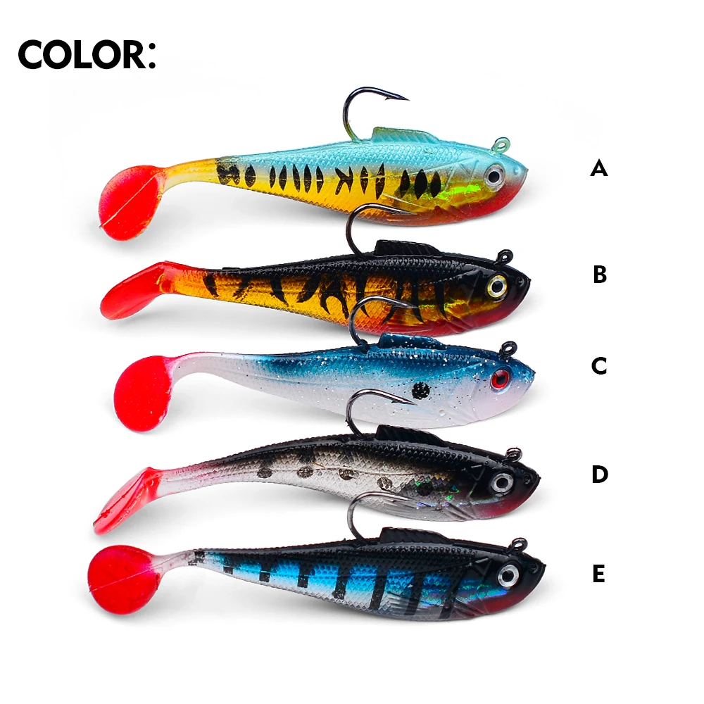 PROBEROS 5 señuelos de pesca blandos de primera calidad con plantilla, cebo Wobblers realista con anzuelos fuertes, perfecto para agua dulce y salada