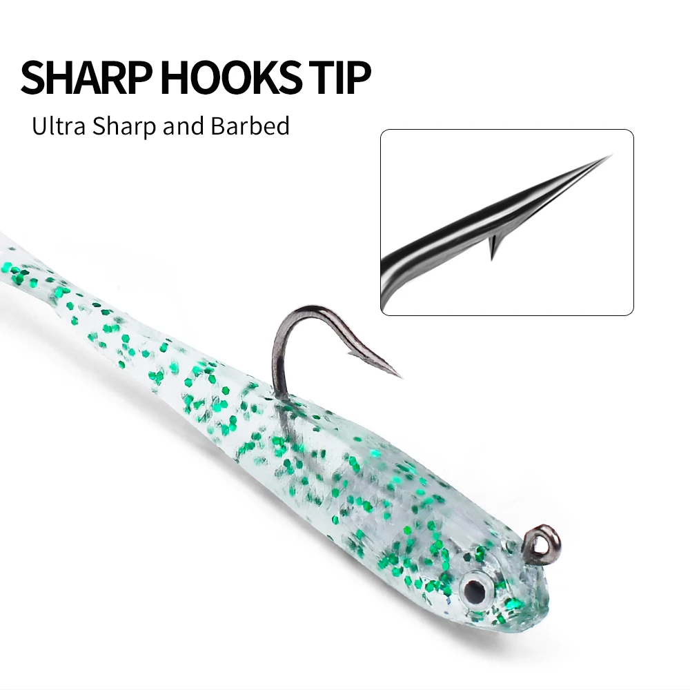 Proberos 5 uds cebo suave Artificial con señuelo suave Jigging pesca lubina señuelos cebo de natación con cola en T señuelo de Jigging
