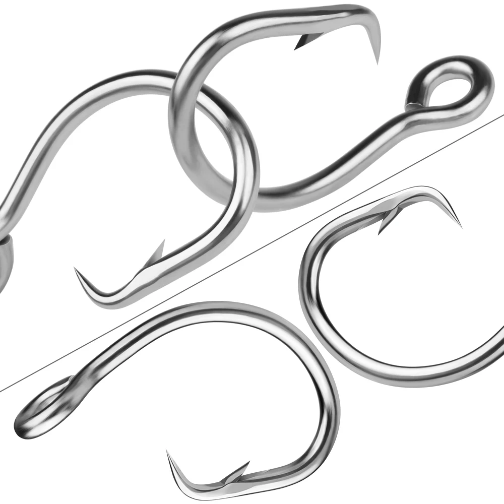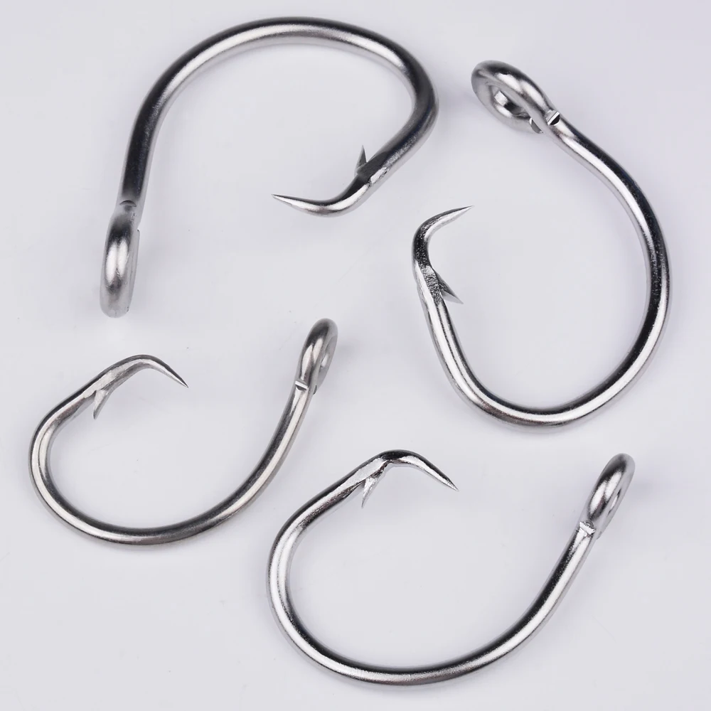 Proberos 5 uds ganchos circulares de atún de acero inoxidable juego grande gancho de agua salada gancho circular de vástago corto Extra fuerte 13/0-16/0