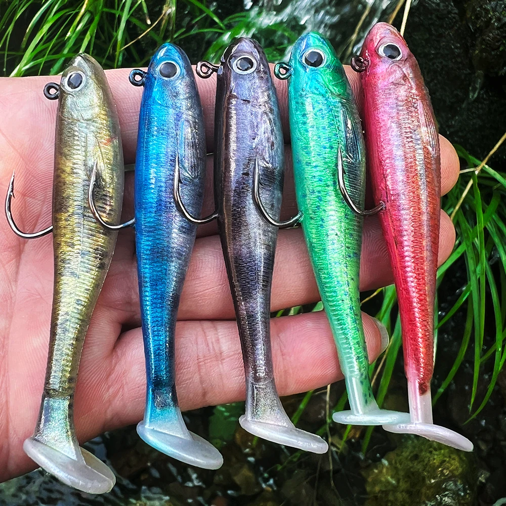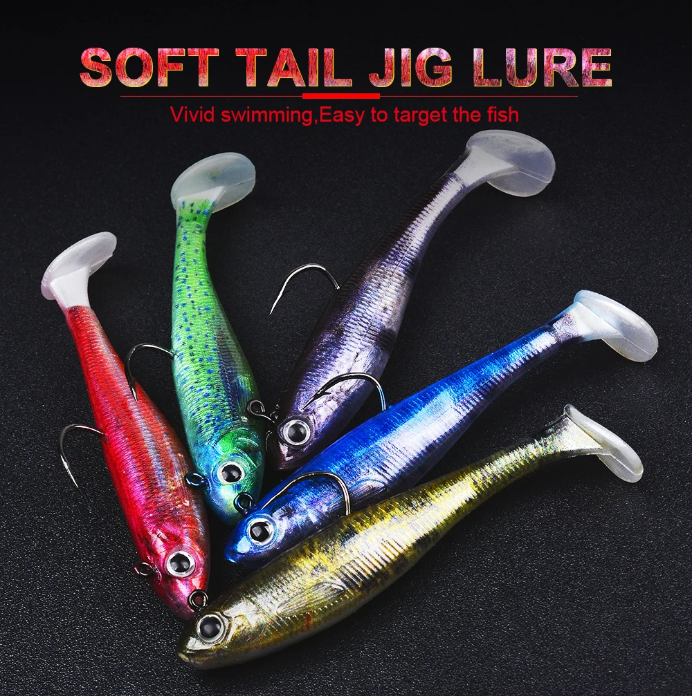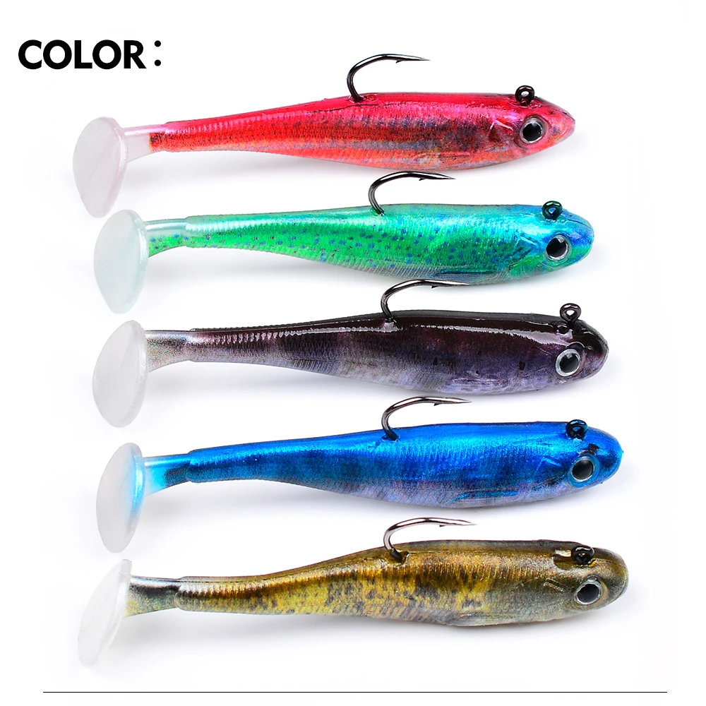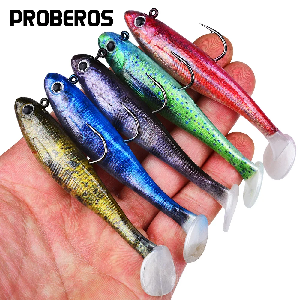 PROBEROS 5 uds señuelo suave cola de sábalo 70/90mm con anzuelo pez Artificial silicona suave cola de tenedor de pescado cebo de bagre para aparejos de pesca