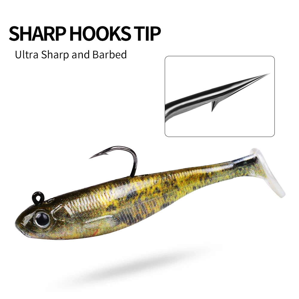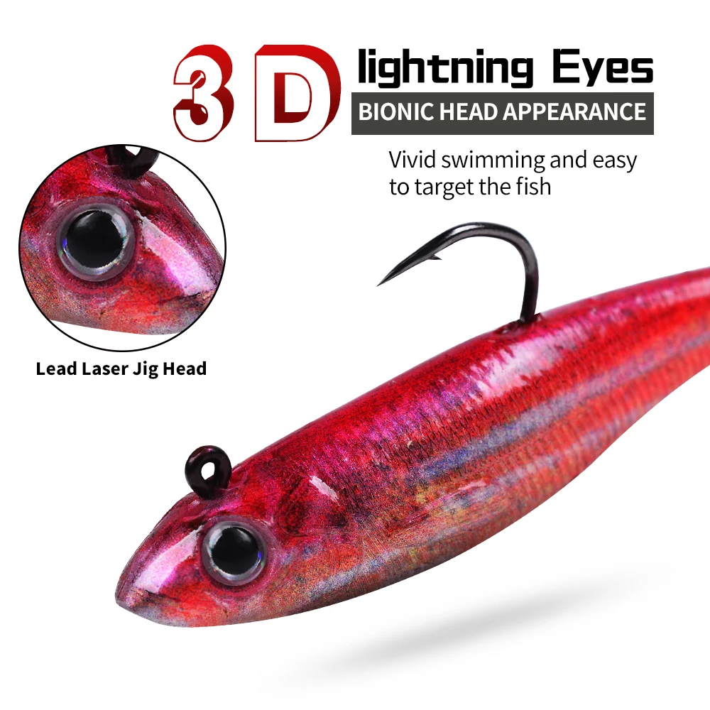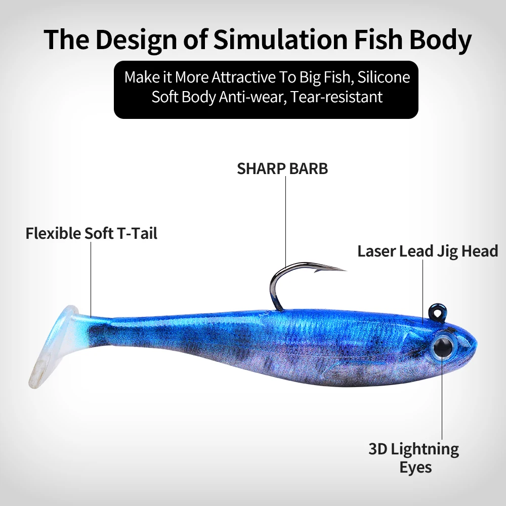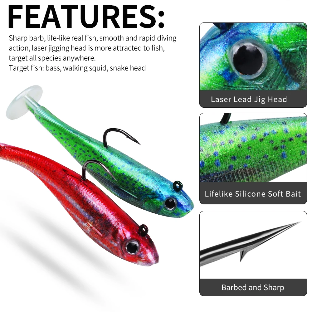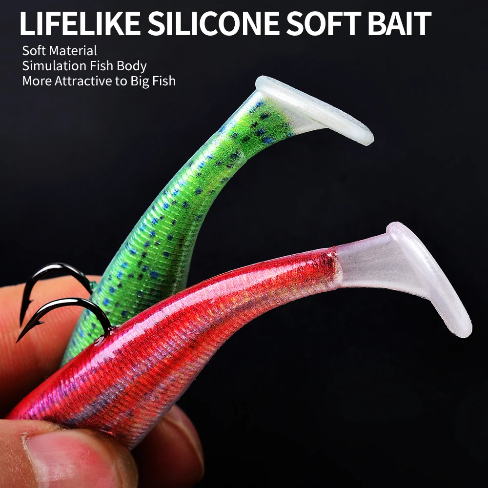 PROBEROS 5 uds señuelo suave cola de sábalo 70/90mm con anzuelo pez Artificial silicona suave cola de tenedor de pescado cebo de bagre para aparejos de pesca