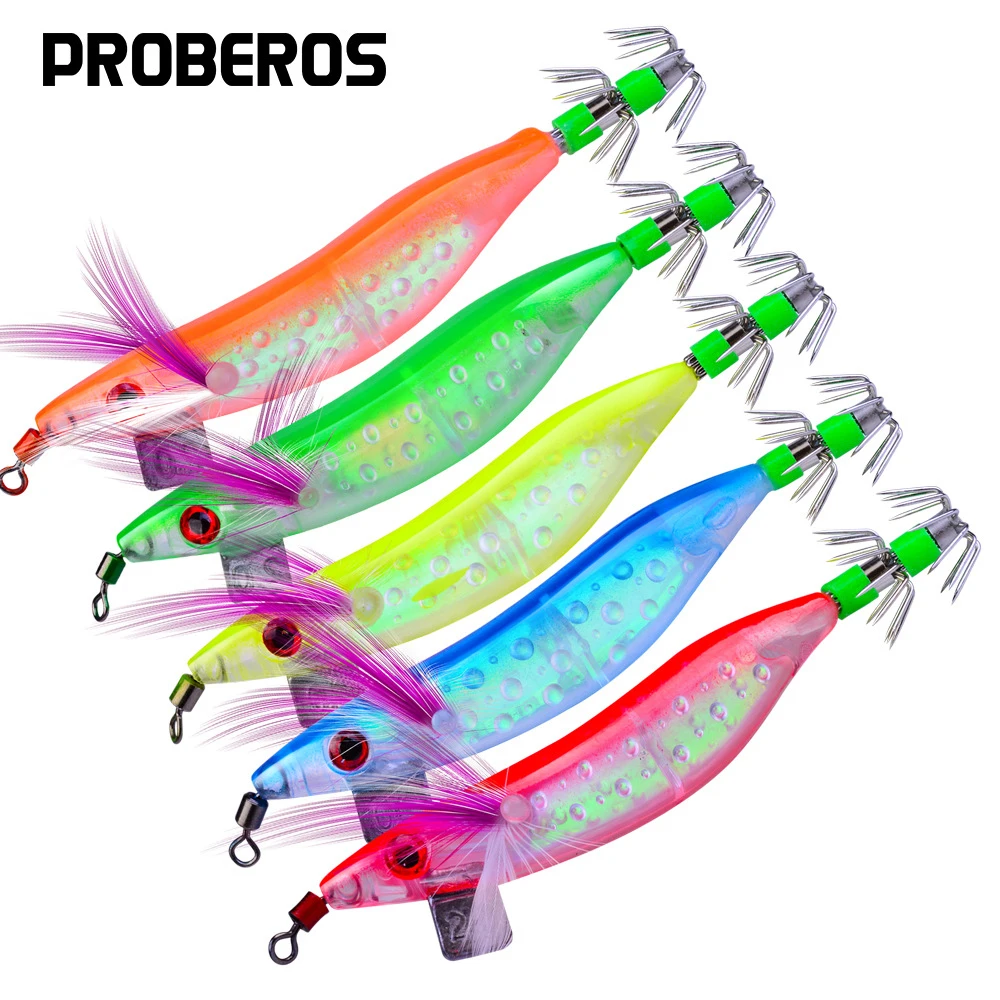 PROBEROS 5 uds Señuelos de Pesca pulpo camarón cebos de madera calamar de mano plantilla envuelto señuelo de gambas plomo plomo plomo 10cm/8,1g 2,0 #
