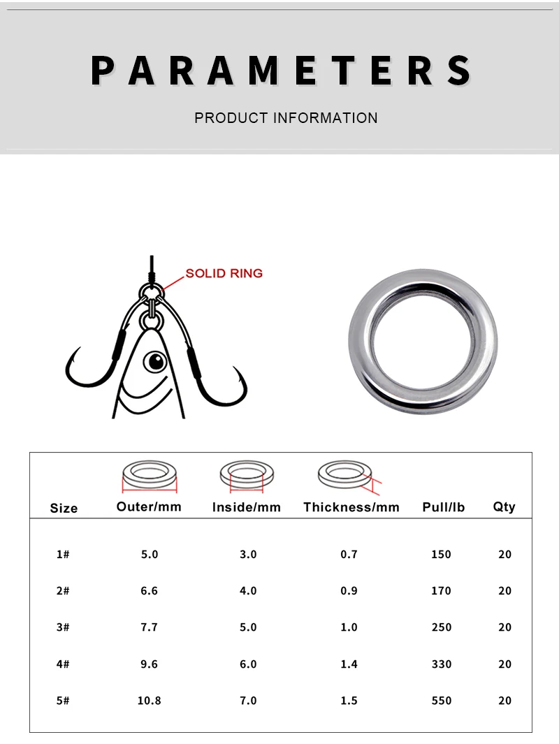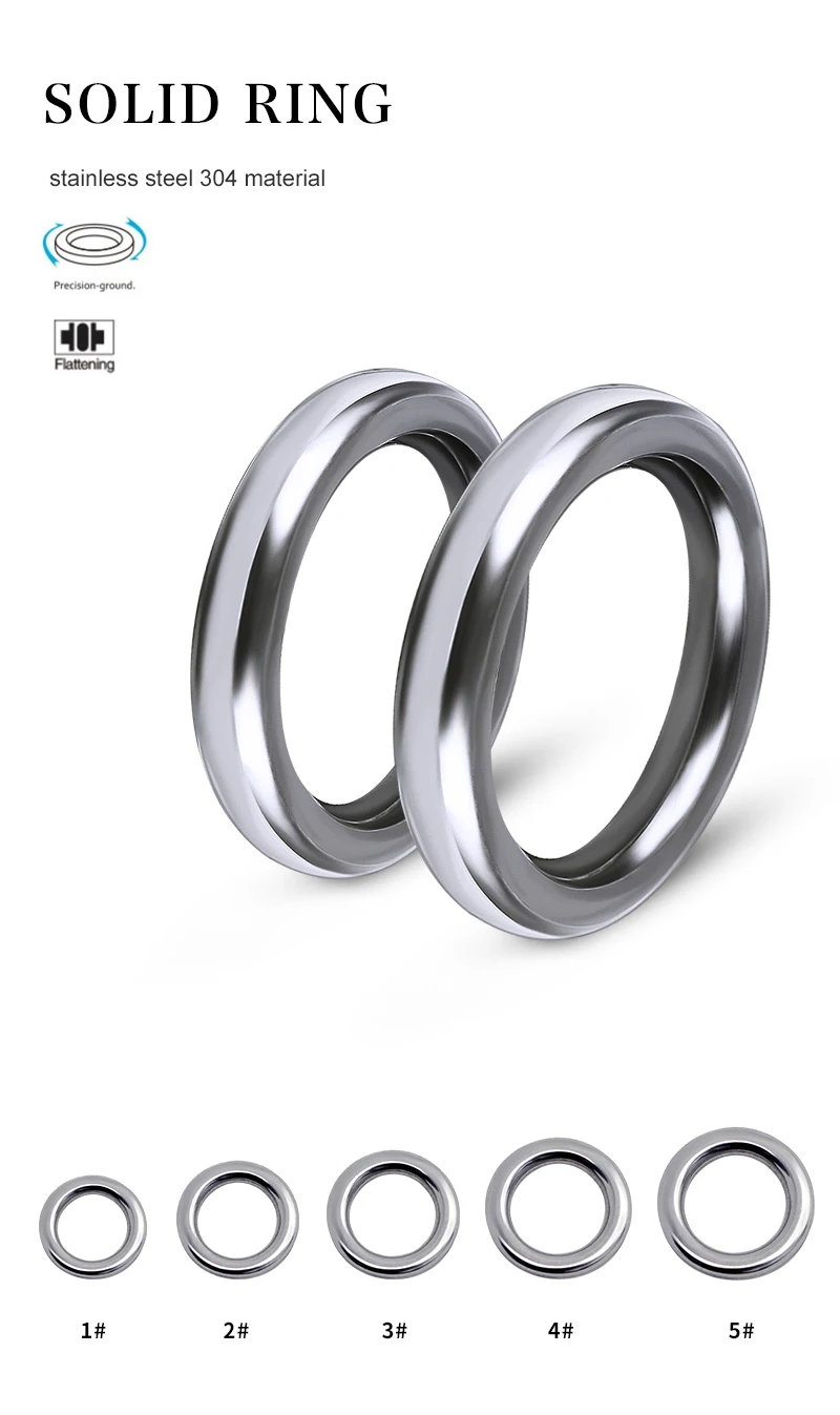 PROBEROS 50 anillos sólidos de pesca de acero inoxidable 304 1 # -5 # Anillos sin costuras de alta resistencia, plantilla de pulido de metales, aparejos de anillos de pesca