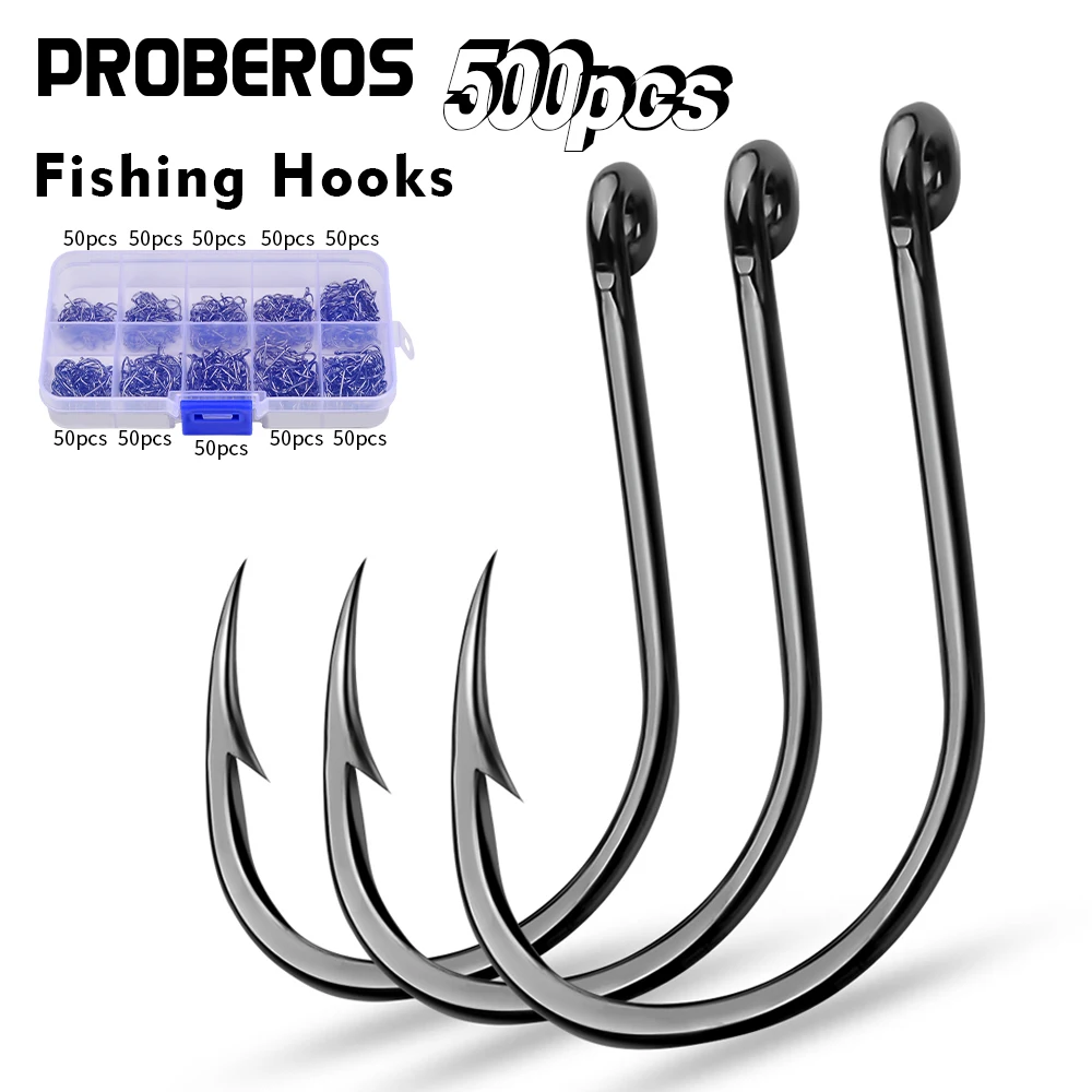 PROBEROS-anzuelo de acero con alto contenido de carbono, accesorio perfecto para pesca al aire libre, para todo tipo de peces, tamaños 3 #-15 #, Color negro, 500 piezas