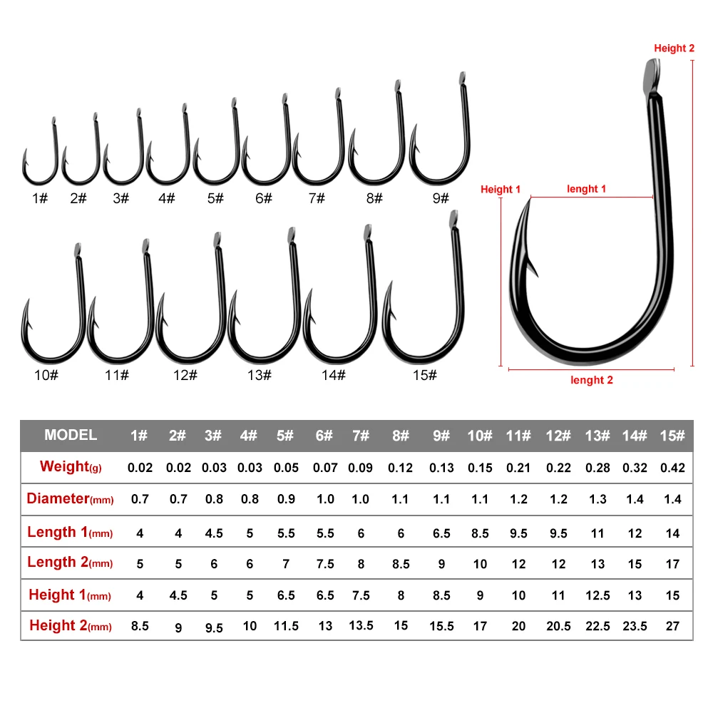 PROBEROS Anzuelo Iseama 1 # -15 # Anzuelo único, anzuelo de pesca de alta calidad, 200 piezas, color negro, anzuelo grande individual