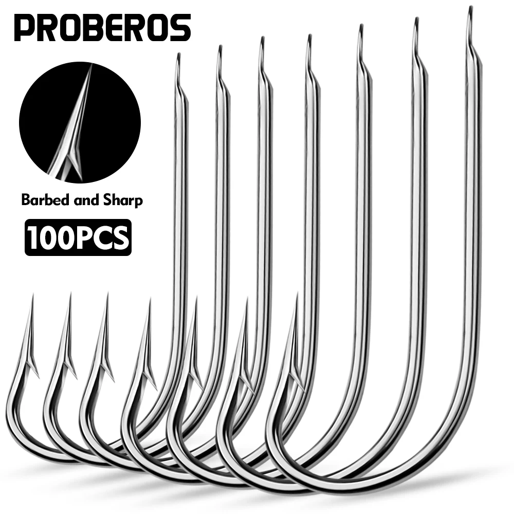 PROBEROS-anzuelo de pesca de 100 piezas, gancho de acero con alto contenido de carbono, mango largo, púas, agua salada, para Río Haihu, accesorios de equipo de pesca