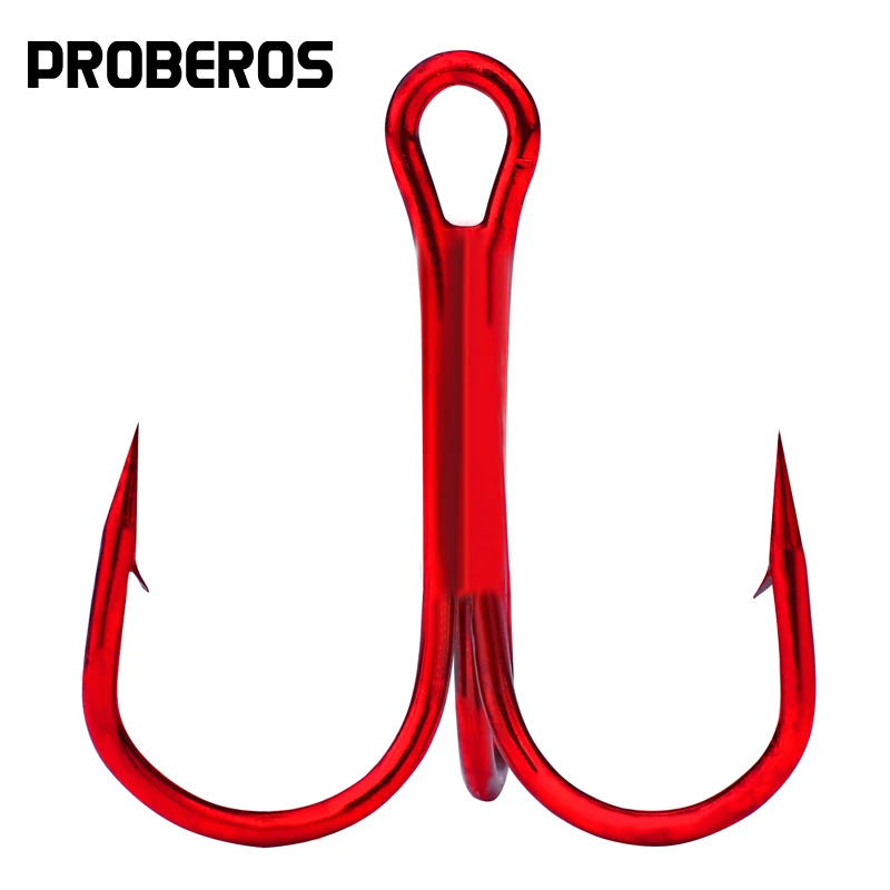 PROBEROS anzuelo de pesca 500 piezas rojo/marrón/plata aparejos de pesca antioxidantes sorprendentes 2 # -10 # -16 # Gancho triple de acero rico en carbono