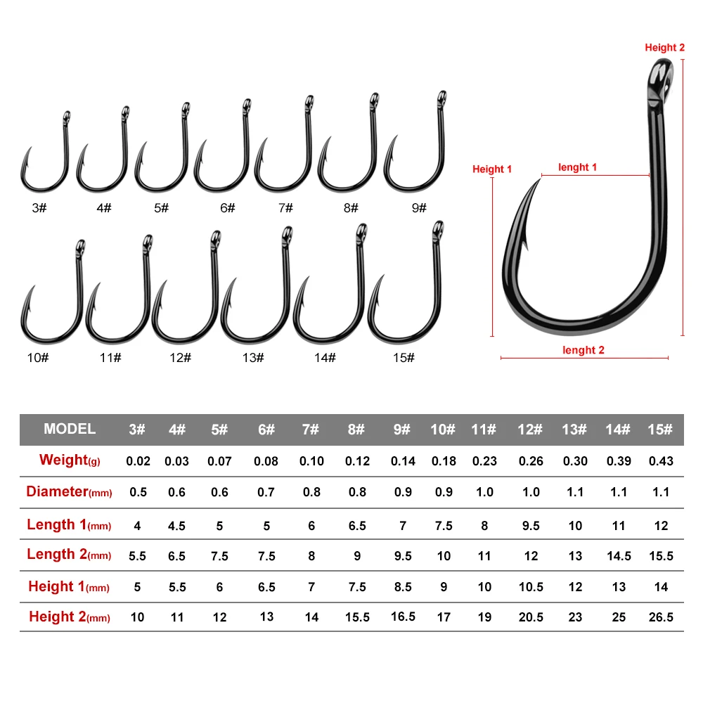 PROBEROS Anzuelos individuales Anzuelo de pesca en agua salada Color negro Anzuelo de acero con alto contenido de carbono Alta resistencia 3#-15# Ganchos individuales calientes SZ003